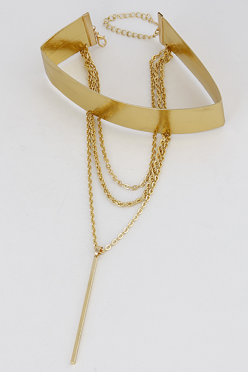 • * Bar Line Design Choker Necklace 6KBB9 * 1.2 x 12" approx.