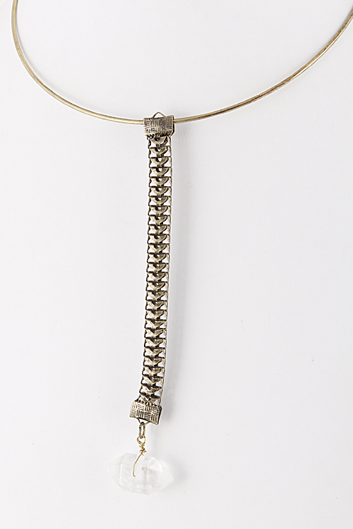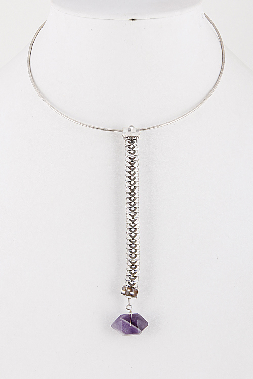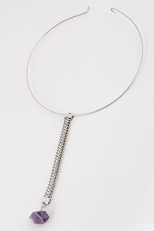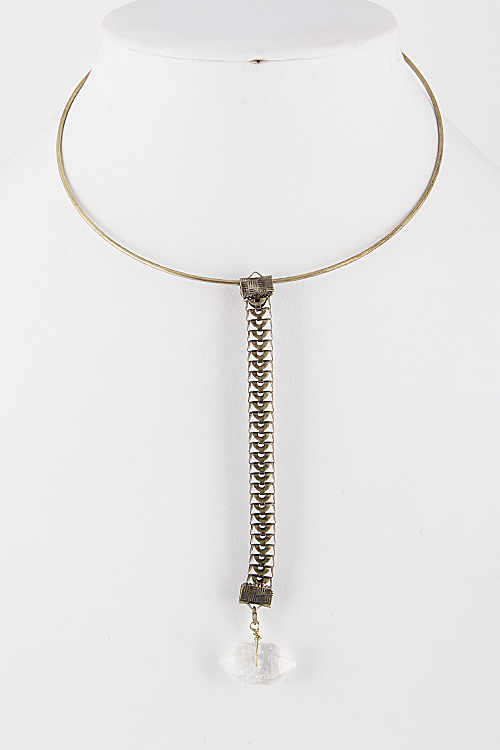 - * Collar Wire Necklace with Long Drop Faux Stone Detail 5ICJ3 * 10" approx.