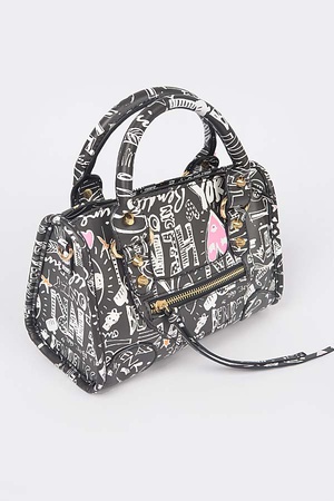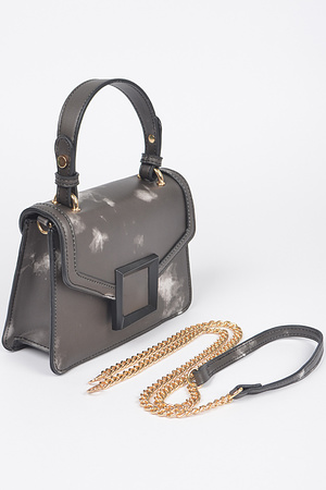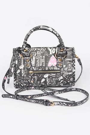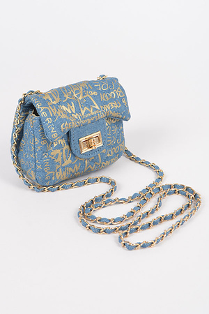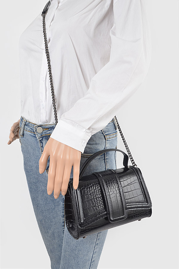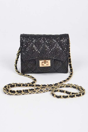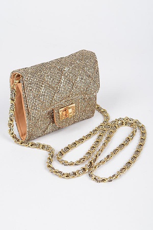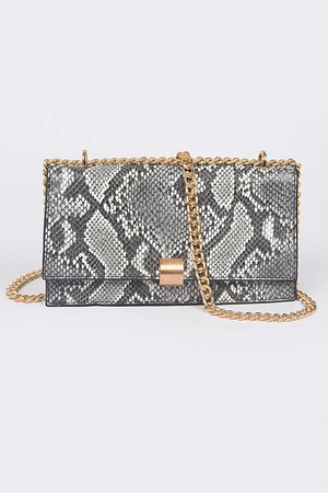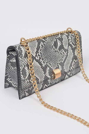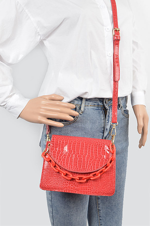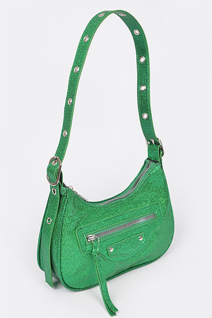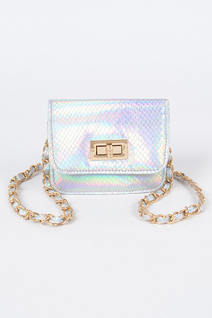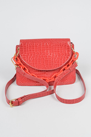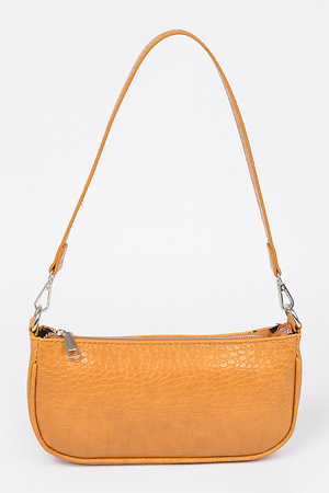 Croc Embossed Metallic Rhinestone Fringe Bag