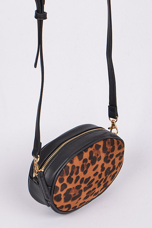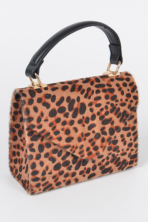Faux Cheetah Fur Top Handle Crossbody Bag