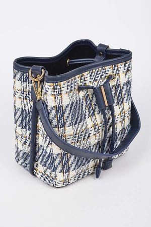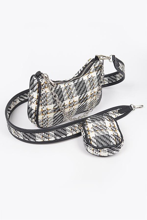 Tweed Plaid Shoulder Bag W/Airpod Purse