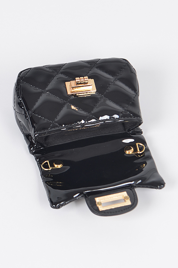 - * Glossy Mini Wrist Bag W/Crossbody Chain