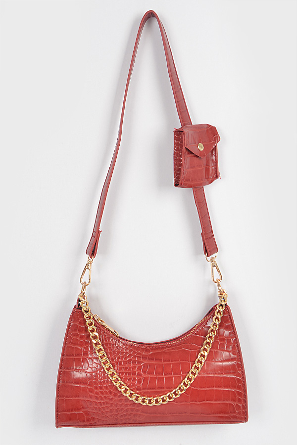 - * Faux Croc Chain Crossbody Bag W/Airpod Purse