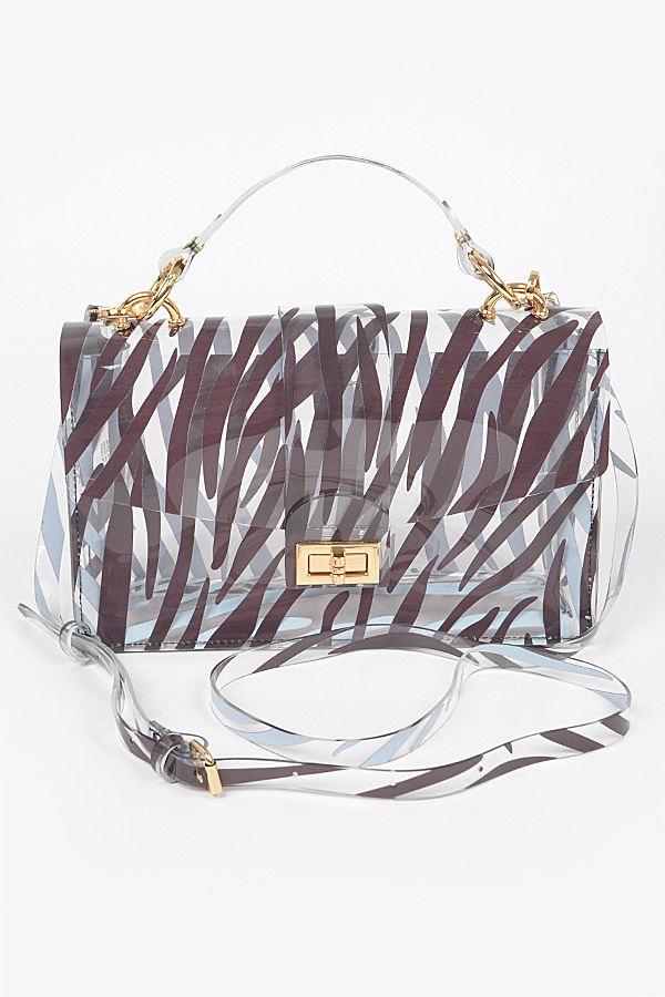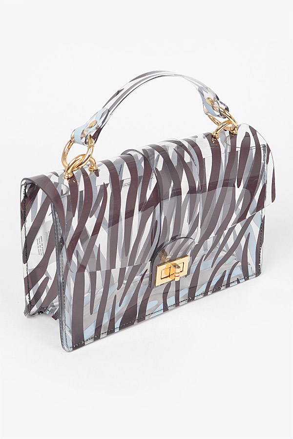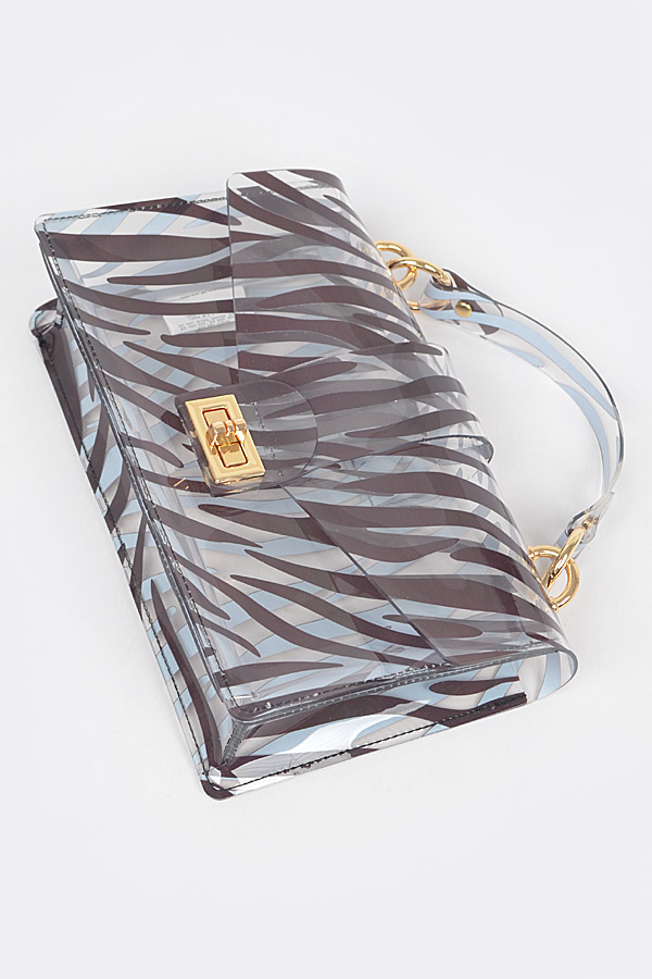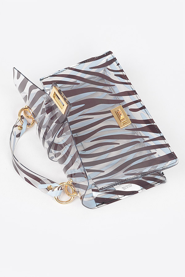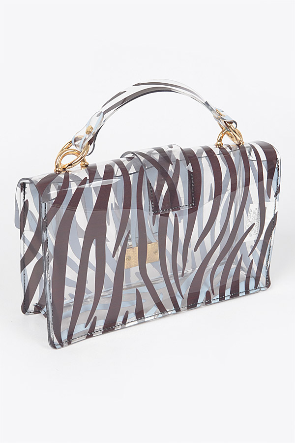 - * Zebra PVC Top Handle Clutch