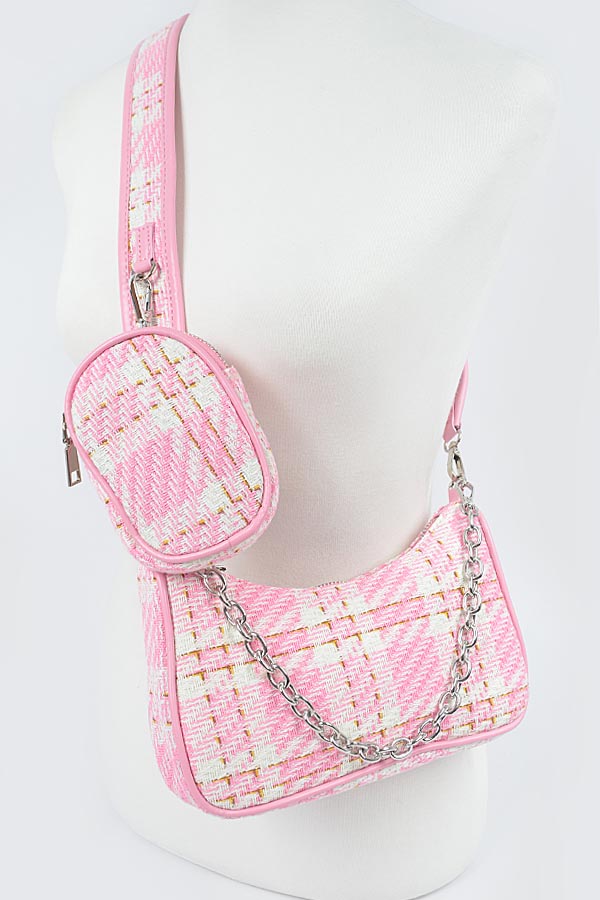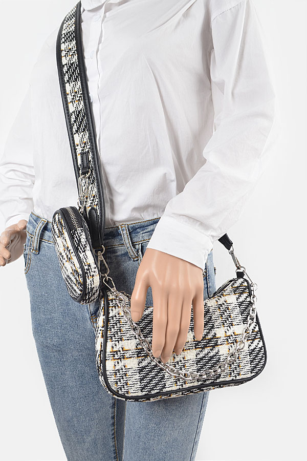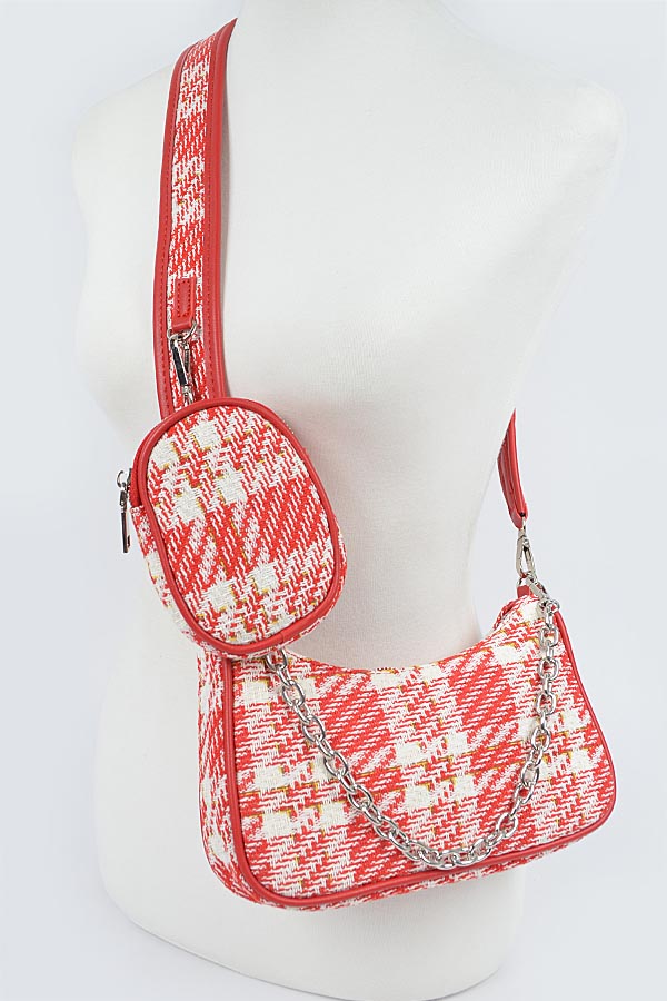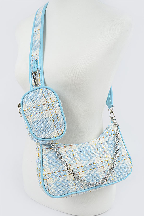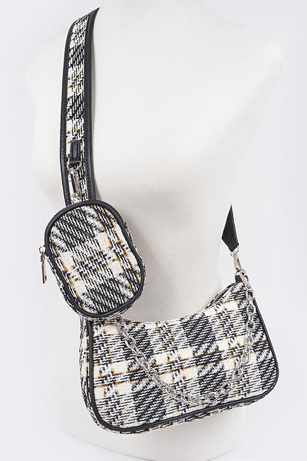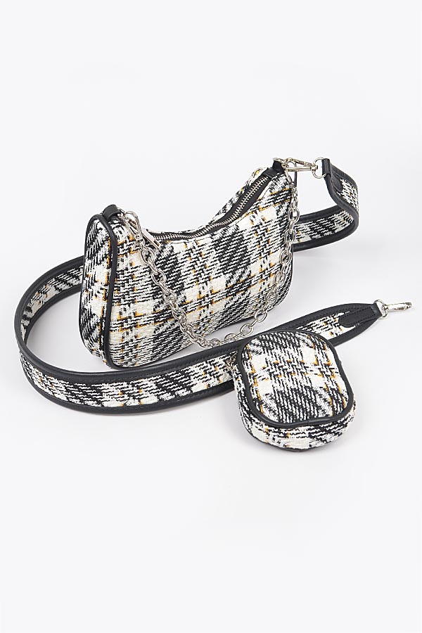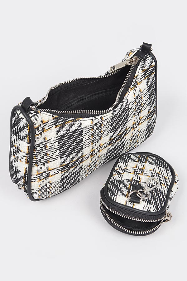 - * Tweed Plaid Shoulder Bag W/Airpod Purse