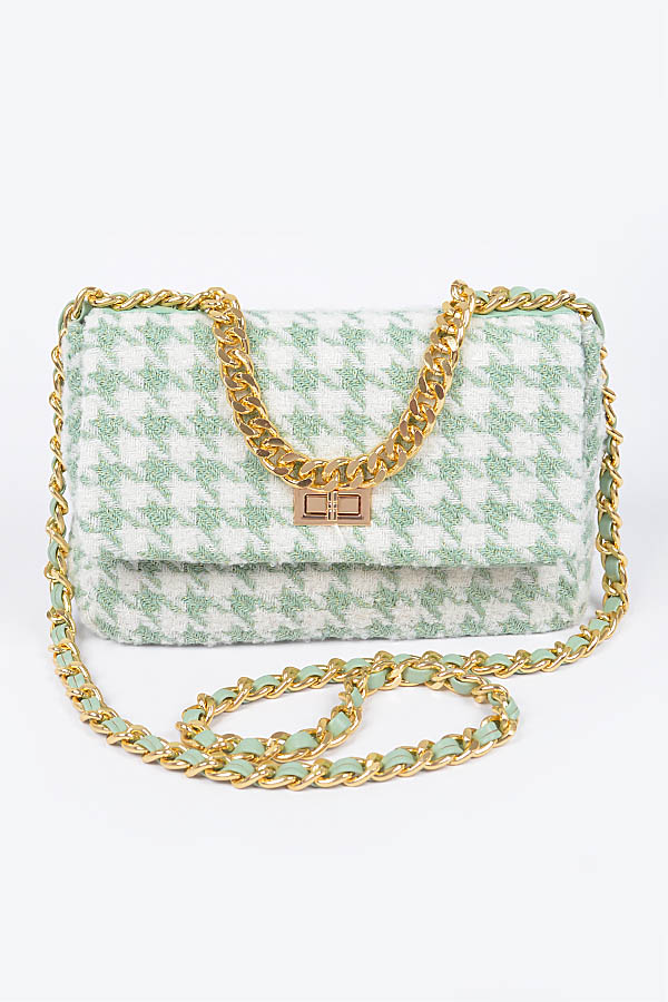 - * Quilted Tweed Houndstooth Chain Shoulder Bag