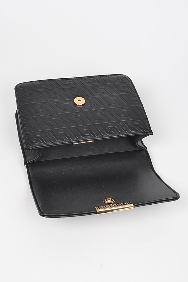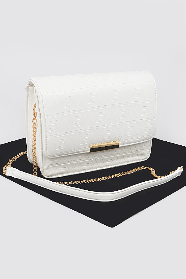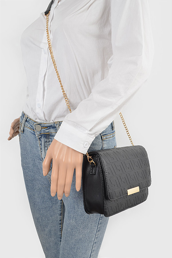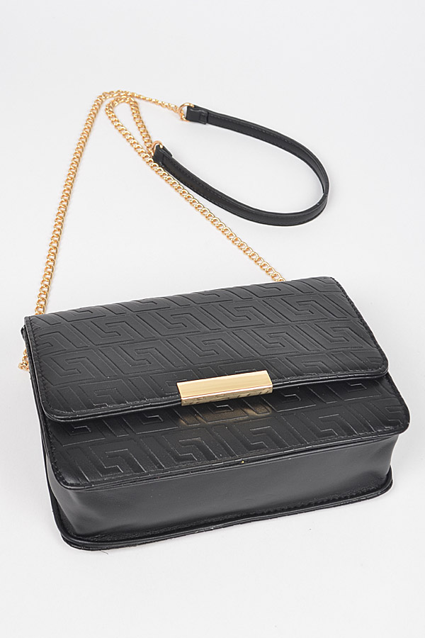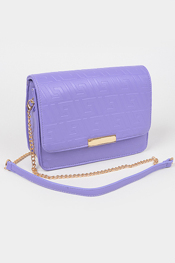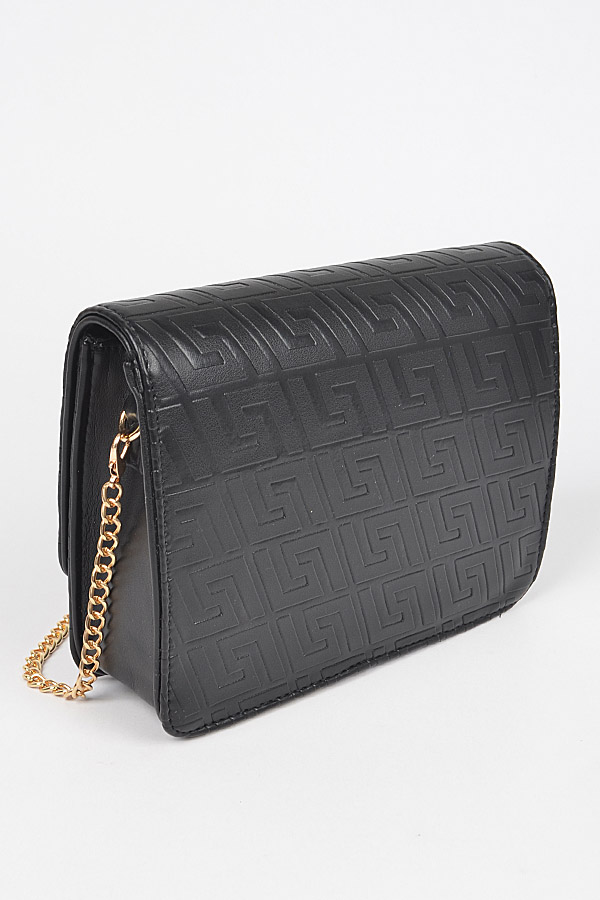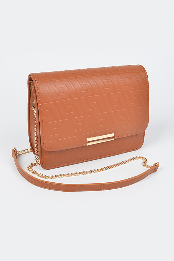 - * Embossed Faux Leather Flap Bag
