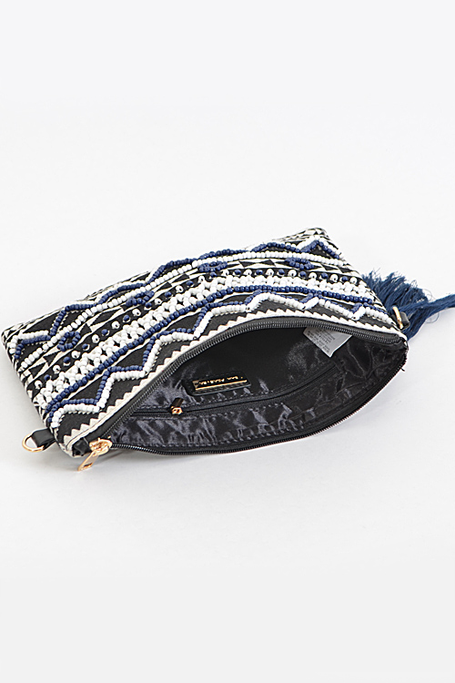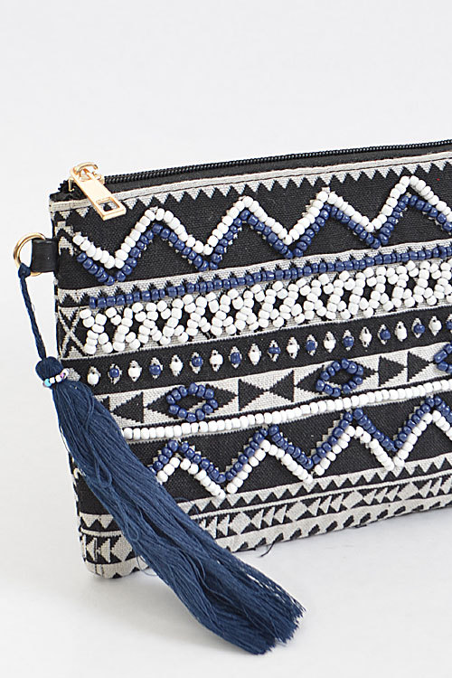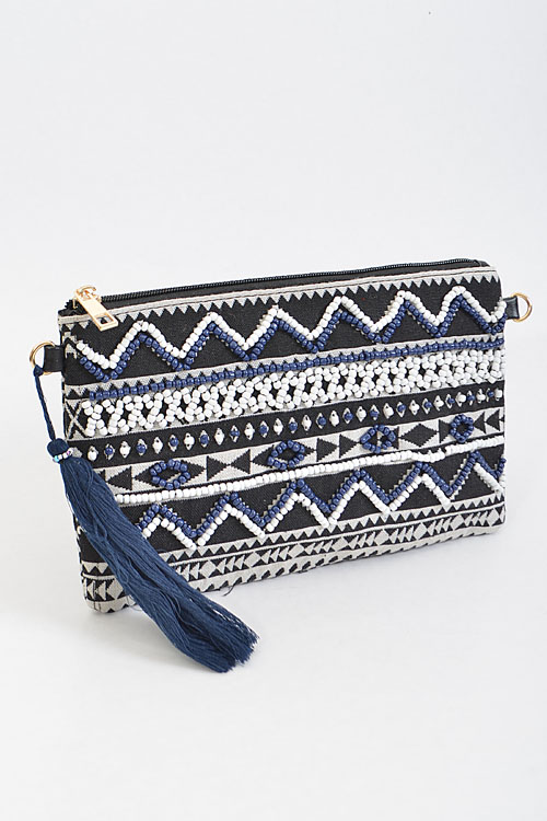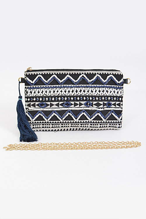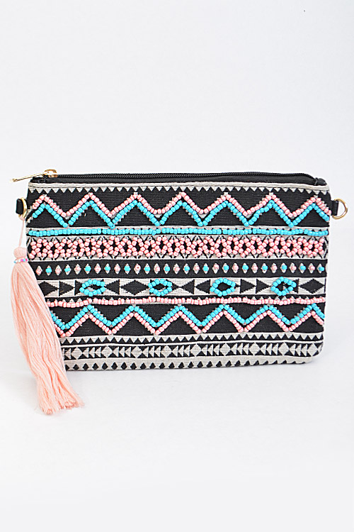 - * Daily Used Tribal Clutch With Tassel * 10.5W*6.5H * Polyurethane, mixed metal