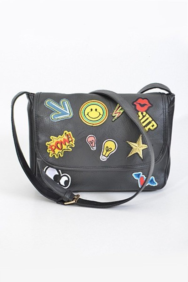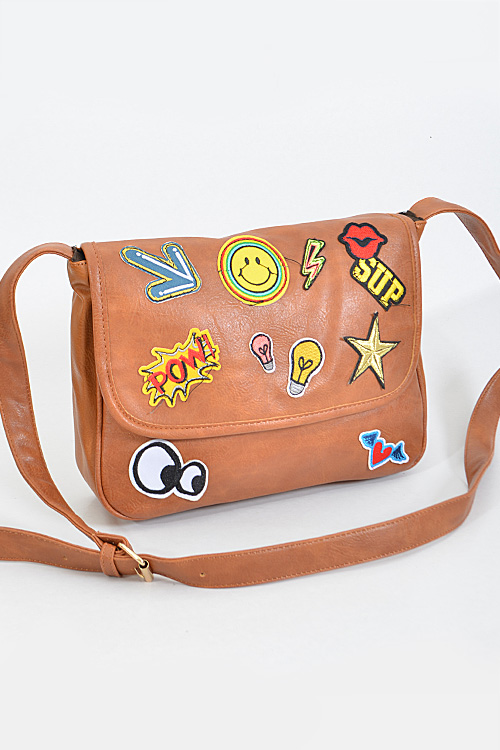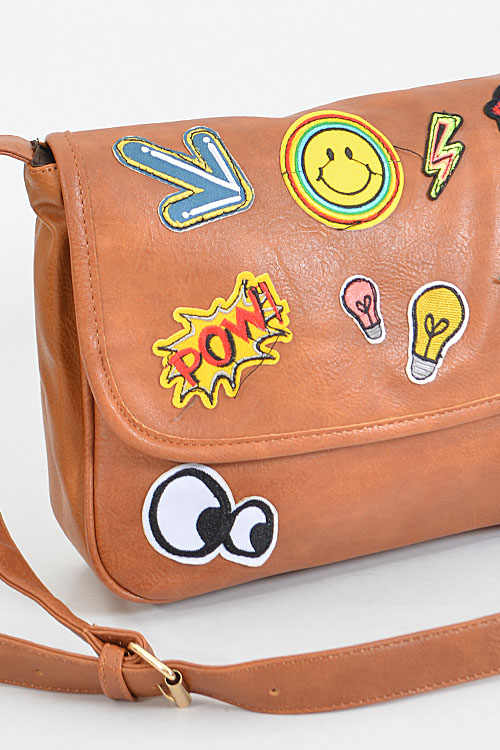 - * Old School Hippie Inspired Side Clutch * 11.5W*8.5H*2.75D * Polyurethane, Mixed Metal
