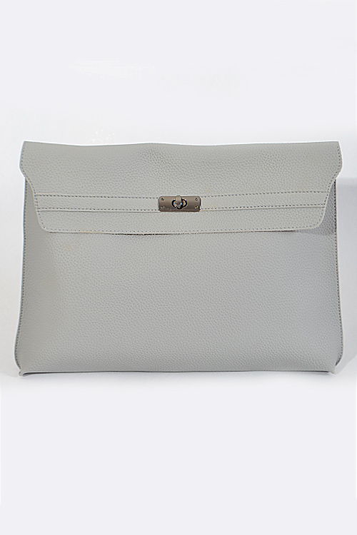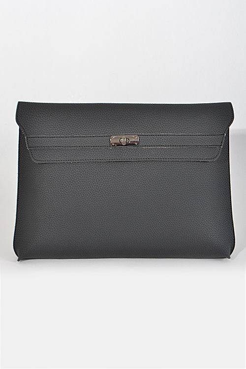 • * Plain Casual Clutch * 13.75W*9.5H*1.25D * Polyurethane, mixed metal