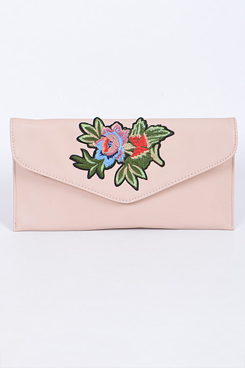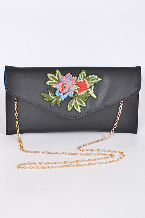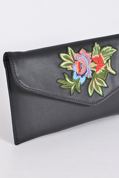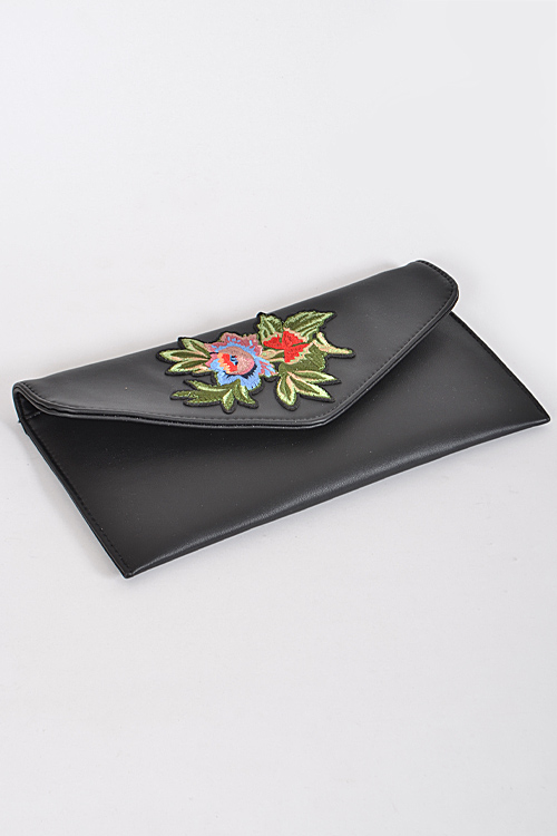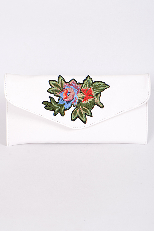 - * Envelop Shape Clutch With Beaded Flower Details * 12.5W*6.5H * Polyurethane, mixed metal
