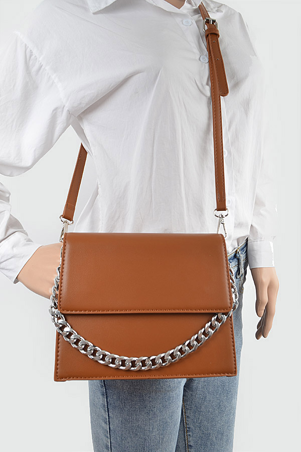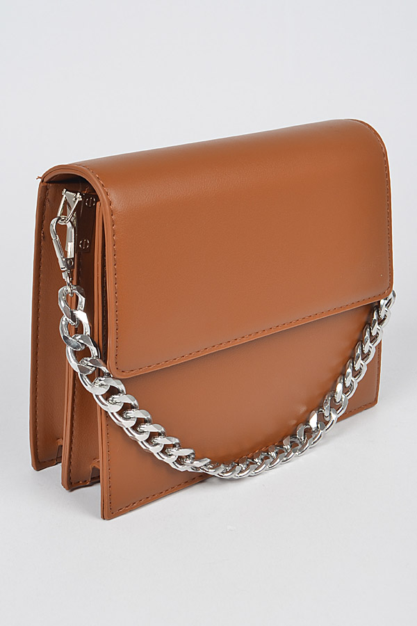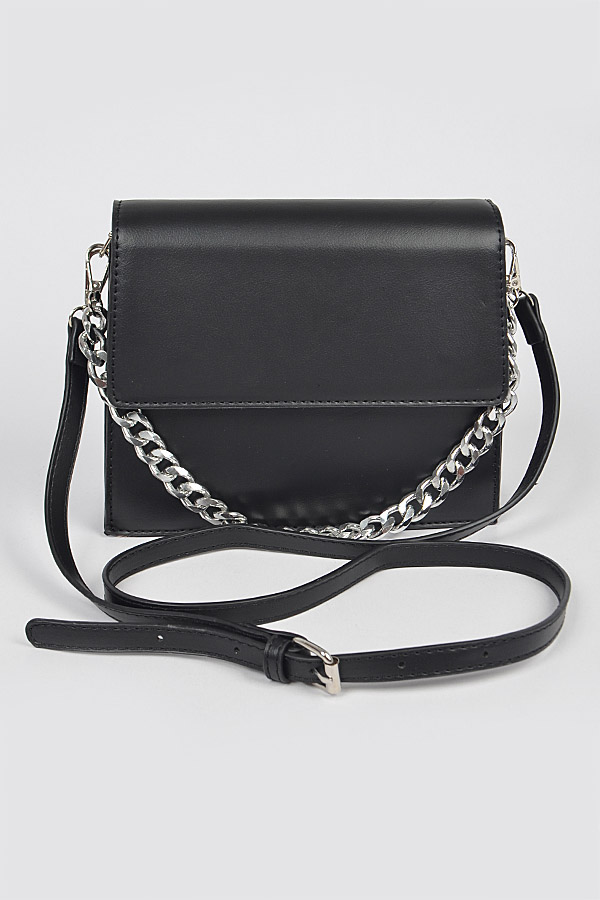 - * Faux Leather Chain Crossbody Bag