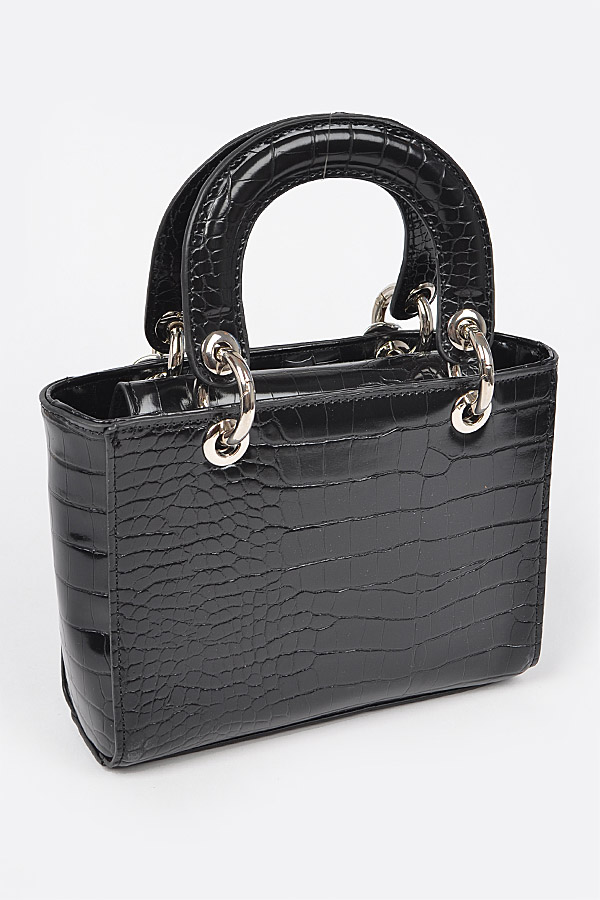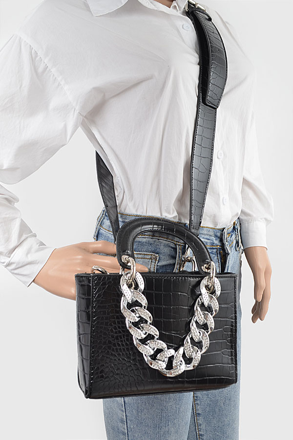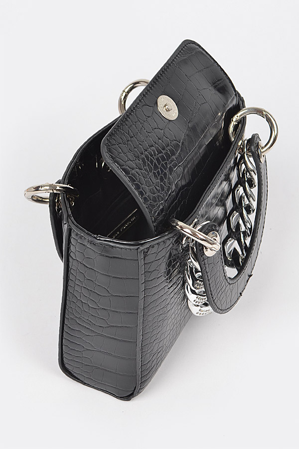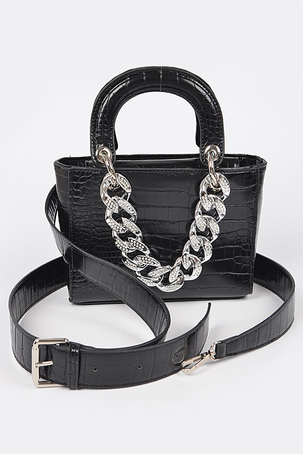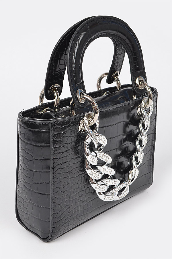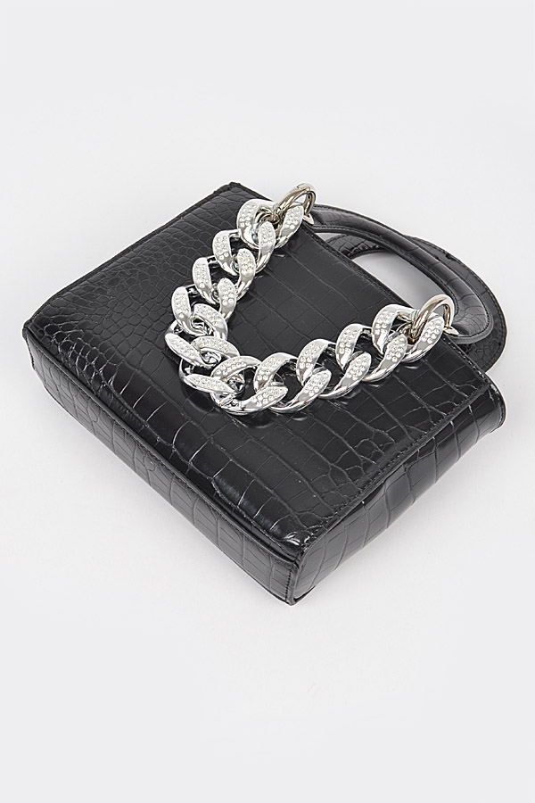 - * Faux Croc Handles Clutch W/Stoned Chain