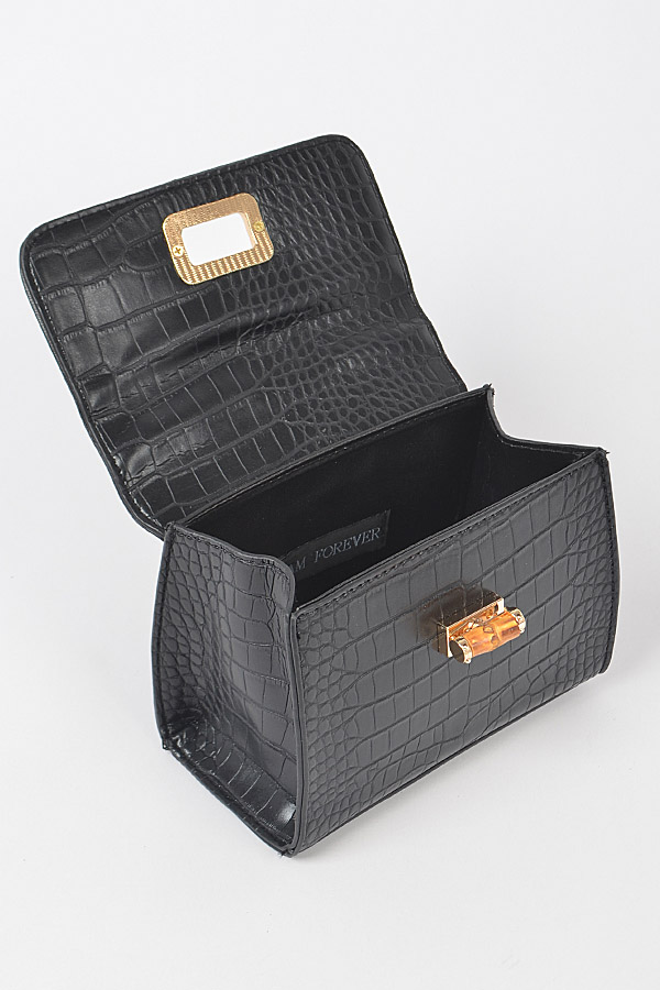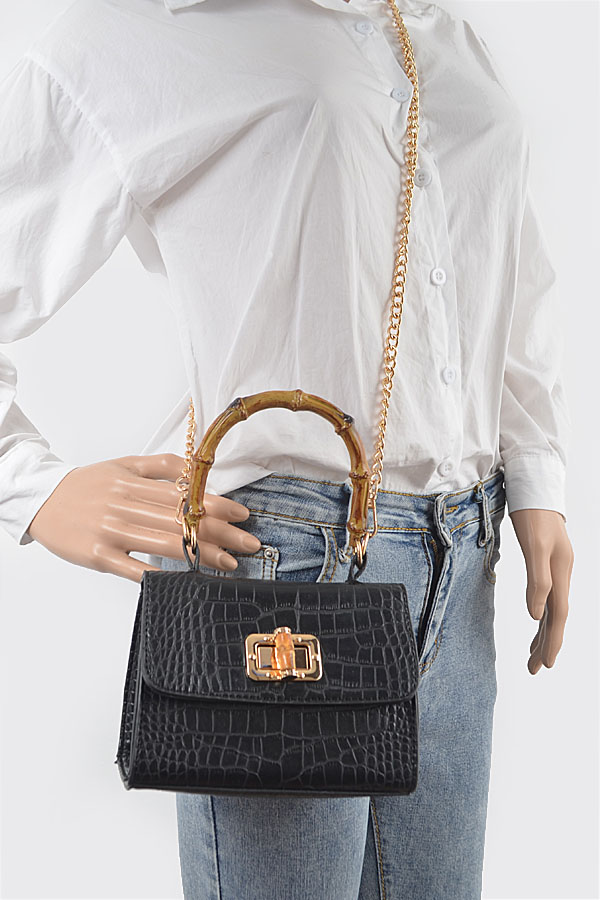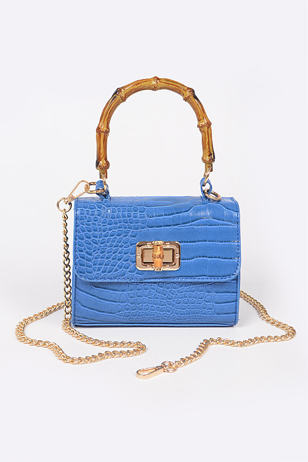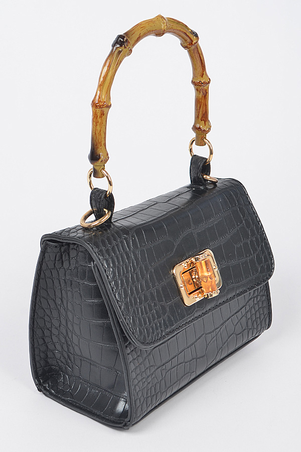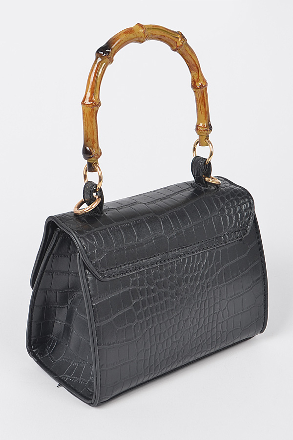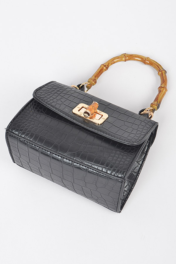 - * Croc Embossed Bamboo Handle Bag