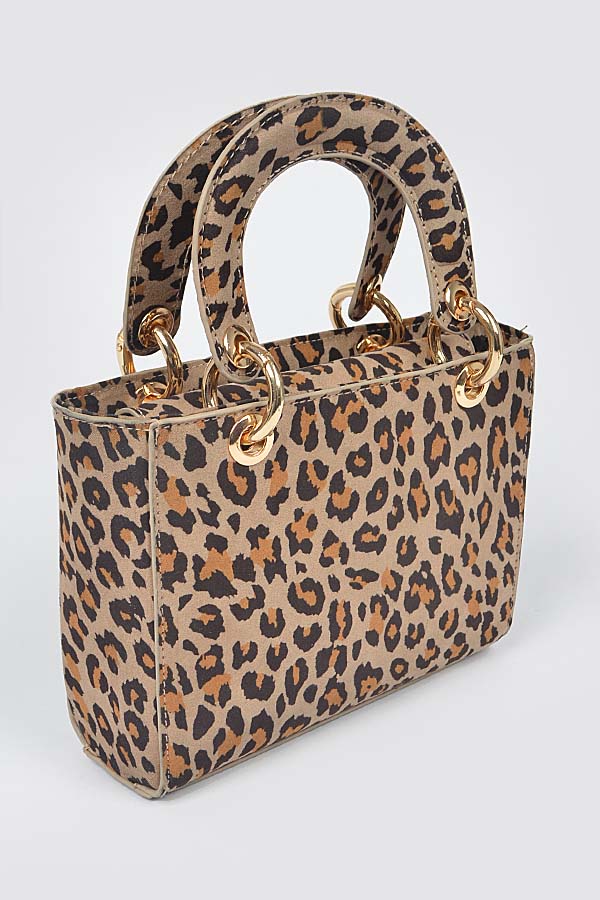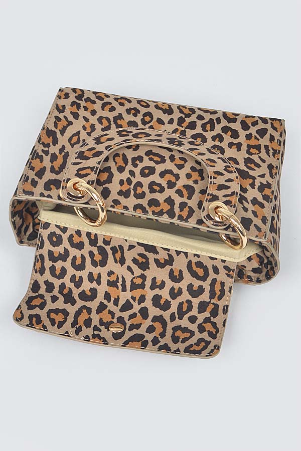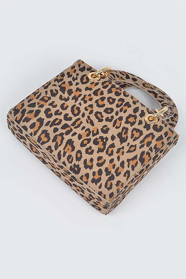 - * Micro Suede Leo Top Handle Crossbody Bag
