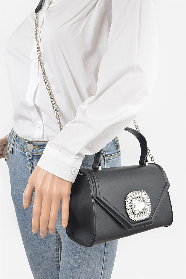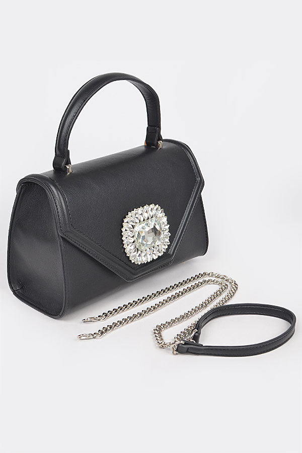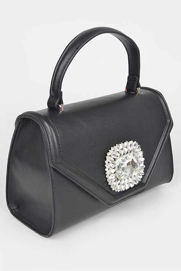 - * Faux Leather Stone Buckle Top Handle Bag