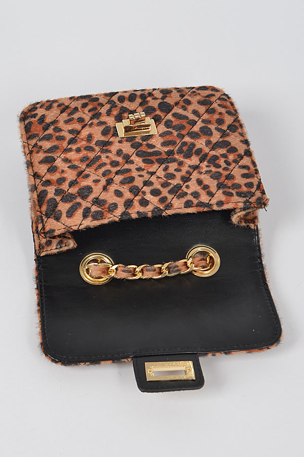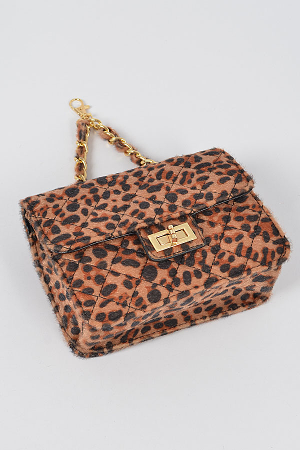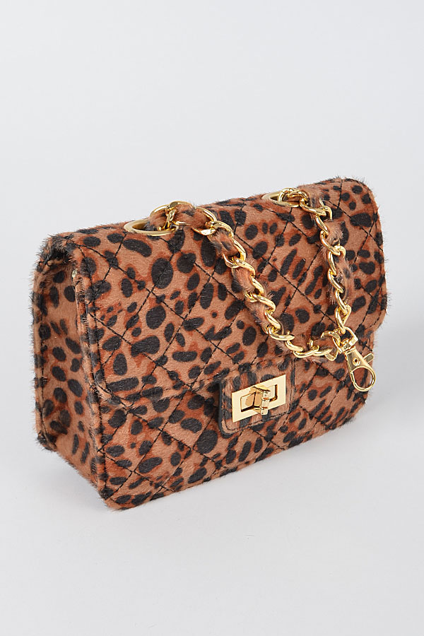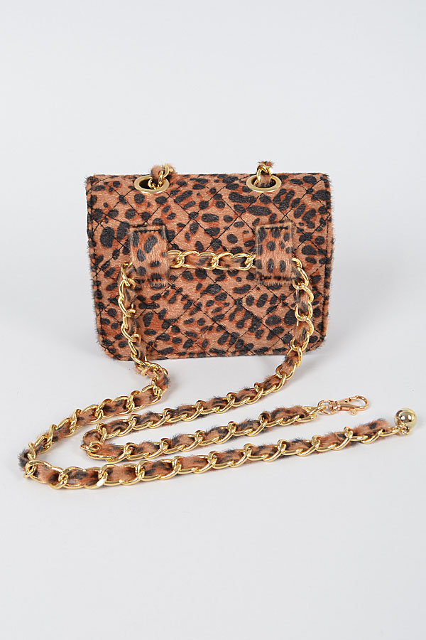 • * Faux Leo Skin Bag W/Chain Belt