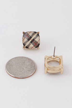 Square Plaid Stud Earrings.