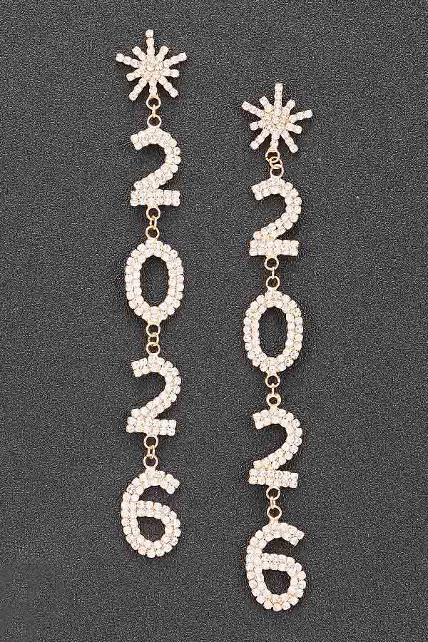 - * This Rhinestone Earring from H&D Accessories features a design with rhinestones forming the numbers "2026" and star - shaped elements. It has a sparkling and eye - catching appearance, giving it a festive and stylish vibe.