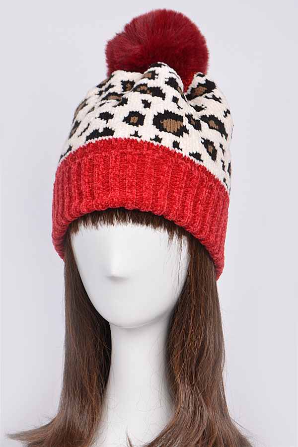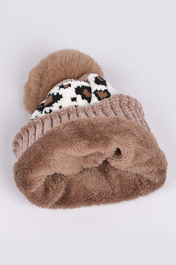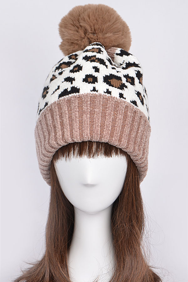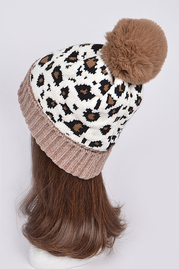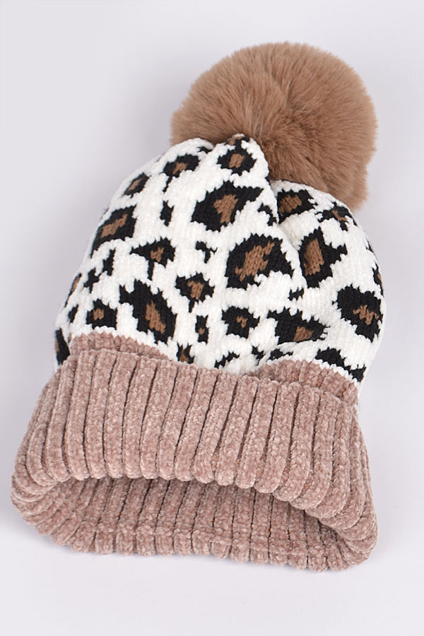 - * Adjustable Leopard Print Beanie With Puff Ball