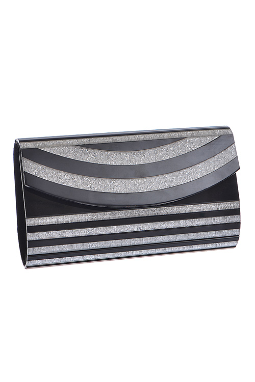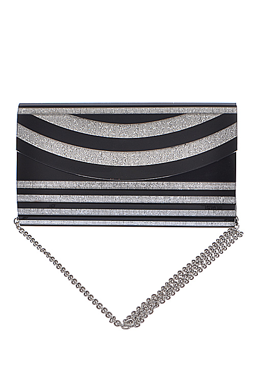 • * Simple Striped Clutch * 7W*4H*0.5D * Polyurethane, mixed metal
