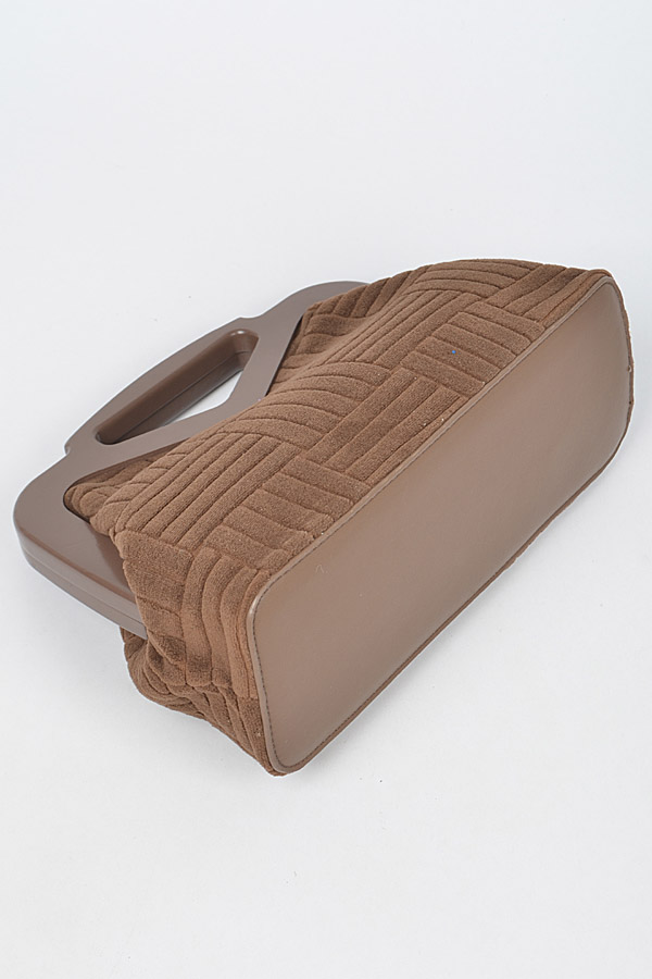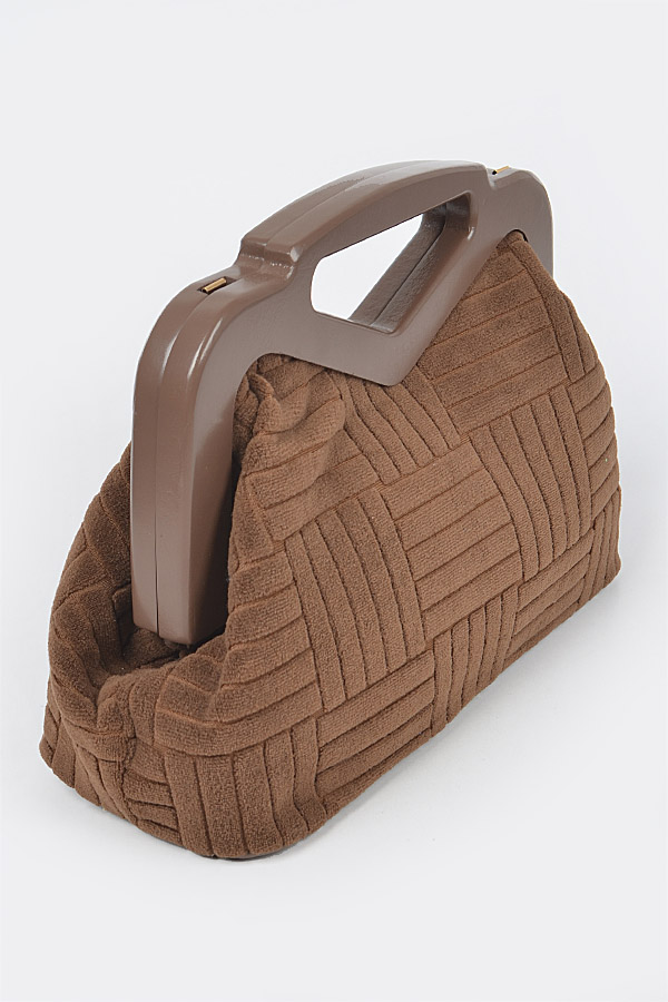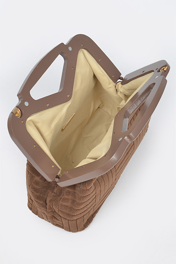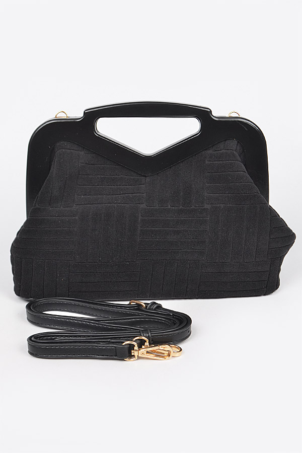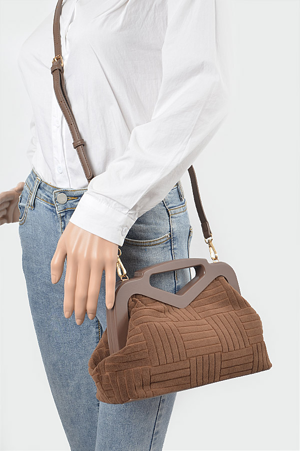 - * Embossed Micro Suede Wood Frame Chain Bag
