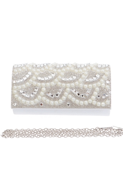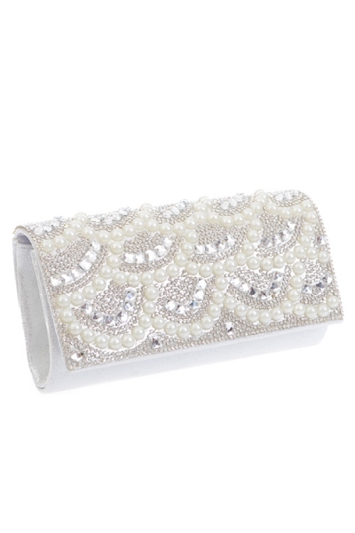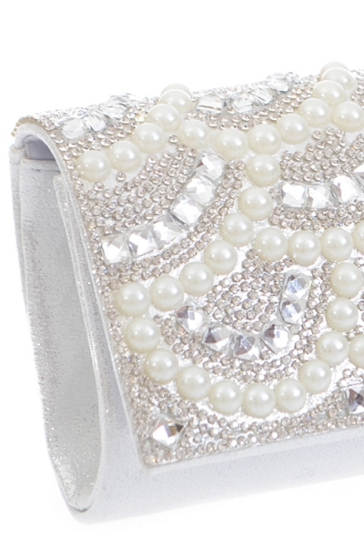- * Pearl Rhinestone Mixed Design Clutch * 7W*4H*1.5D * Polyurethane, mixed metal