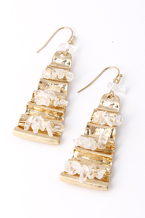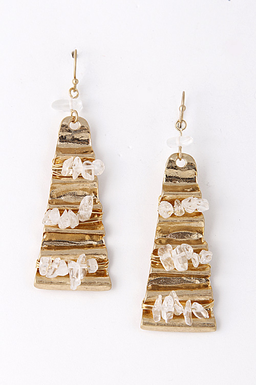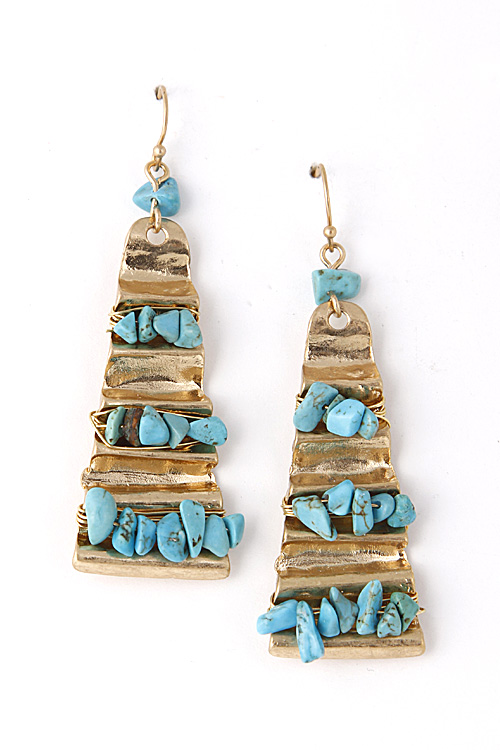 - * Pebble Stone Wired Plate Dangle Earring 5EBJ3 * 1 x 3" approx.