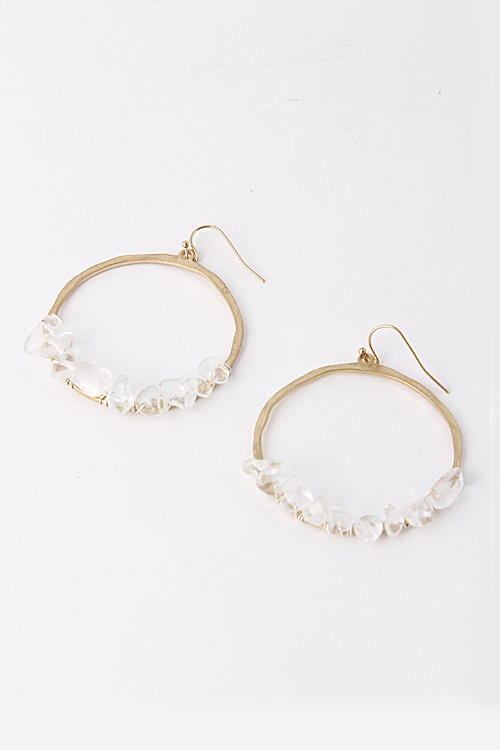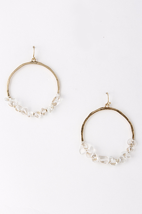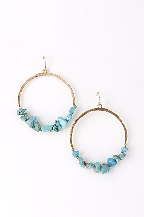 - * Carved Tiny Stone Wired Hoop Earring 5EBJ3 * 2.25 x 2.75" approx.