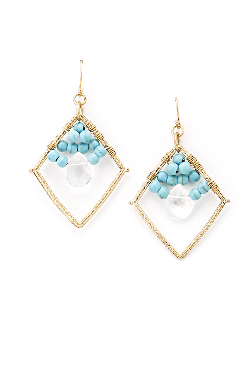 - * Square Bead Rhinestone Earring 5FDA10 * 2.5 x 1.5" approx.