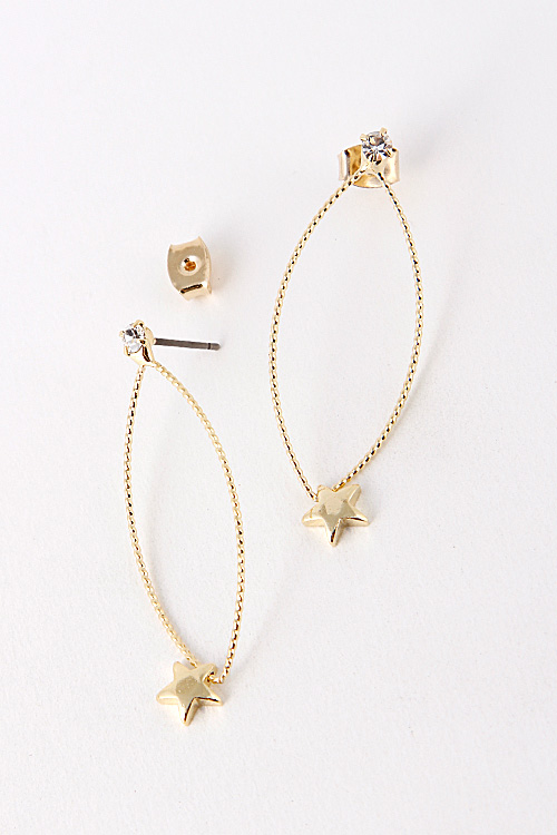 - * Cubic Rhinestone Star Cutout Dangle Stud Earring 5EBB1 * .6 x 1.6" approx.