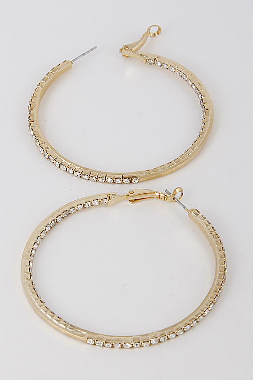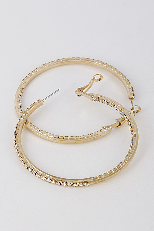 - * Formal Thick Rhinestone Hoop Earrings 6FCG8 * 2.2 X 2.5" approx.