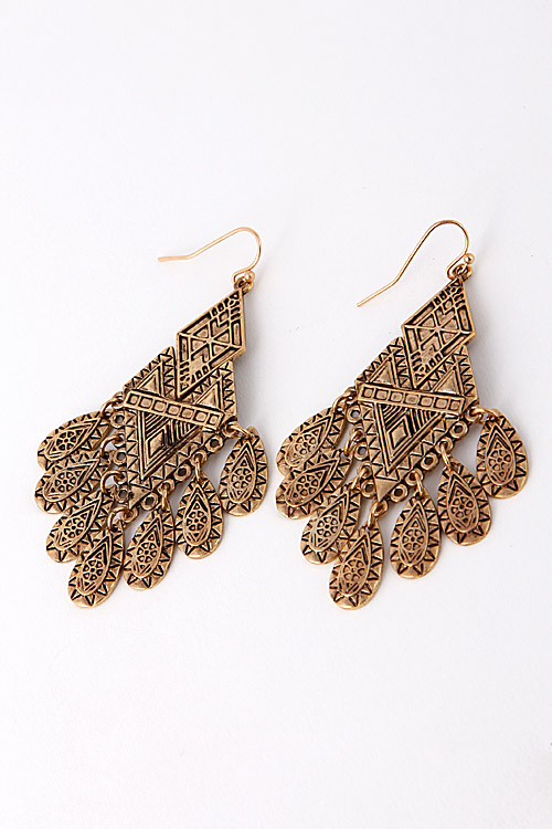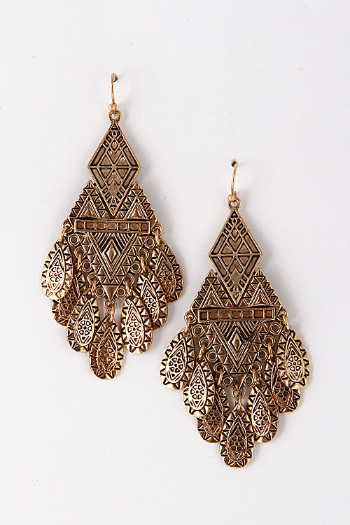 - * Triangle Chevron Inspired Antique Dangle Earring 5EBB1 * 1.6 x 2.75" approx.
