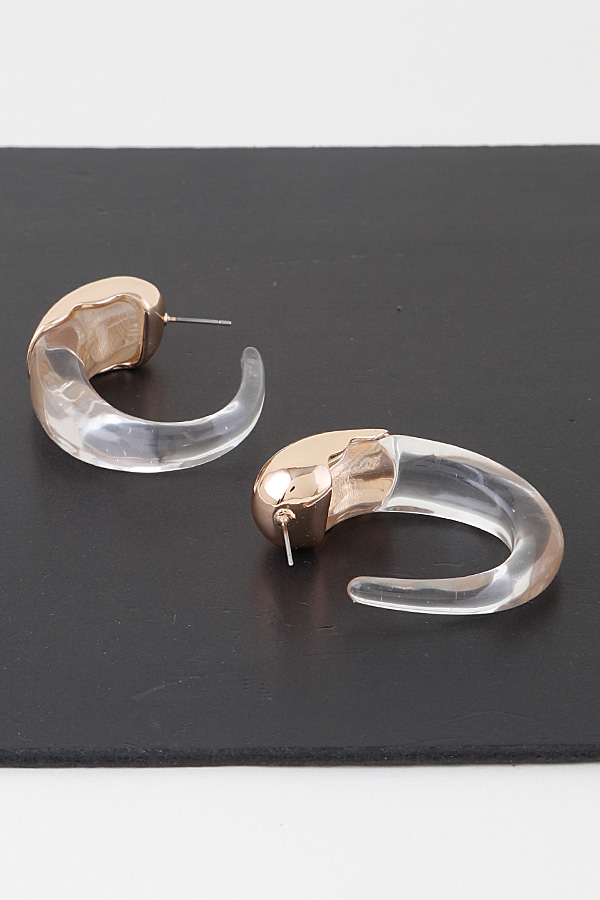 - * Introducing "Transparent Hook Claw Earrings" from H&D Accessories! The perfect blend of elegance and modernity. These exquisite earrings feature a stunning combination of clear plastic and gold plated metal, creating a captivating visual appeal. Elevate your style and make a statement with Transparent Hook Claw Earrings - a must-have accessory for any fashion-forward individual.