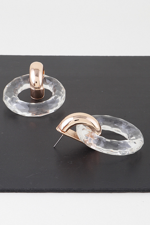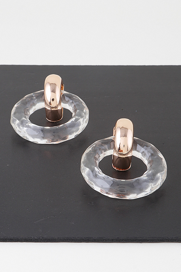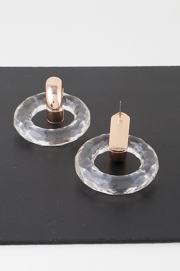 - * Introducing the "Transparent Hammered Ring Drop Earrings" from H&D Accessories! With their transparent hammered design, these rings exude a sense of delicate charm and modernity. Elevate your style and make a statement with our Transparent Hammered Ring Drop Earrings, the perfect accessory to complement any outfit.