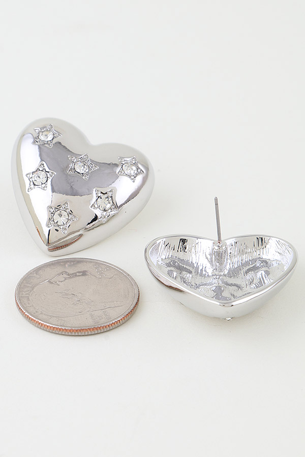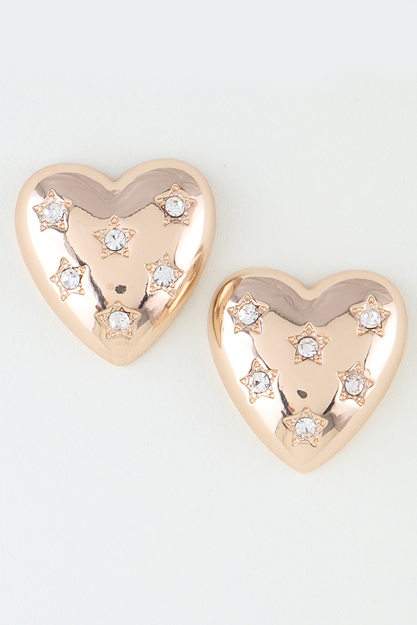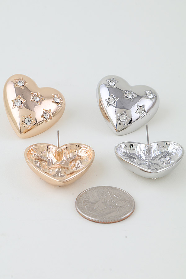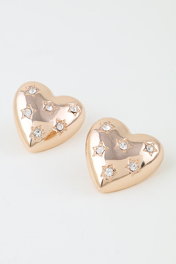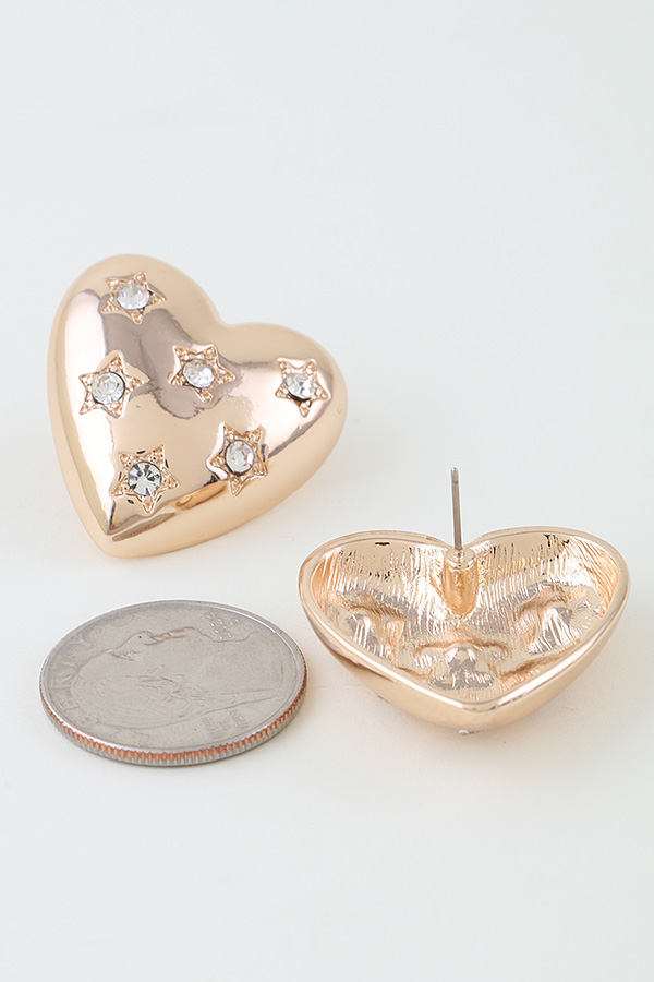 - * These are a pair of Star Bejeweled Heart Stud Earrings from H&D Accessories. Featuring a heart shape adorned with star-shaped bejeweled details, they blend romantic charm with a touch of sparkle. They are perfect for various scenarios: you can wear them on a Valentine’s Day date to complement your sweet and stylish look, during a casual weekend outing with friends to add a playful yet elegant touch to your outfit, or even when attending a romantic-themed event to showcase your appreciation for cute and trendy accessories. These stud earrings not only serve as a lovely fashion piece but also reflect a sense of whimsical romance, making them an excellent choice for anyone who wants to express their unique style in everyday or special occasions.
