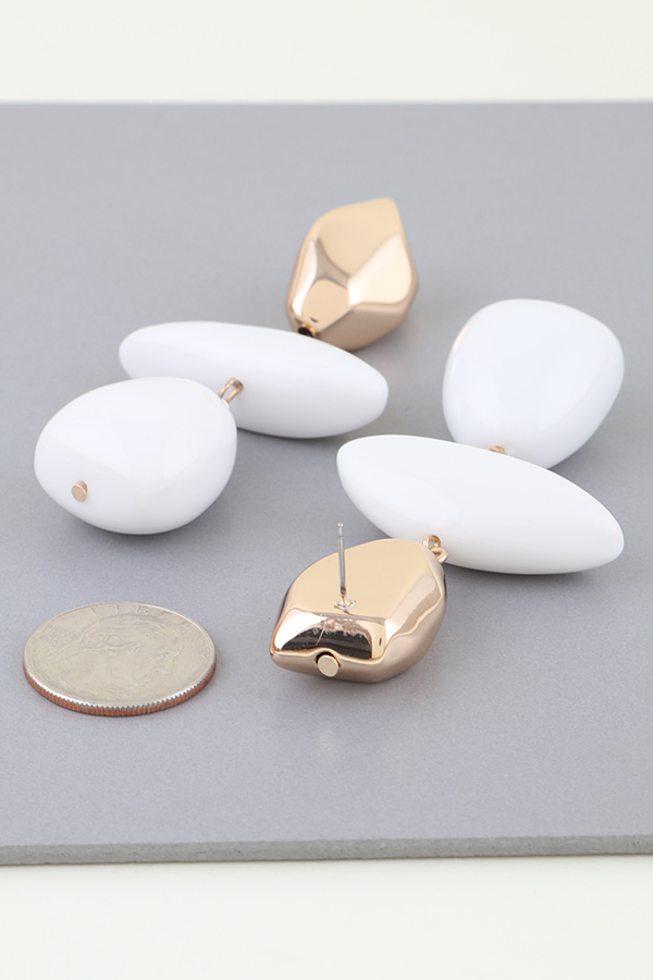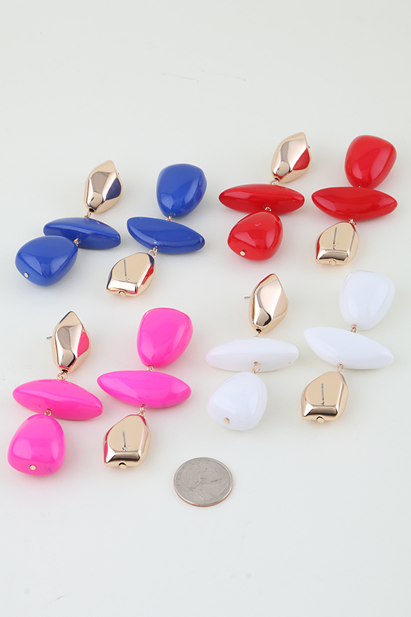 - * Make a bold, retro-inspired statement with these Retro Geometric Stone Drop Earrings from H&D Accessories. Featuring a tiered design, each earring combines a polished, angular metal top piece with two smooth, glossy stone drops in distinct geometric shapes—one elongated and flat, the other rounded and organic. The reflective metal catches light beautifully, while the vibrant, glossy finish of the stones adds a playful, eye-catching pop. Lightweight and dynamic, these earrings blend nostalgic retro aesthetics with modern geometric design, making them a standout addition to any jewelry collection.