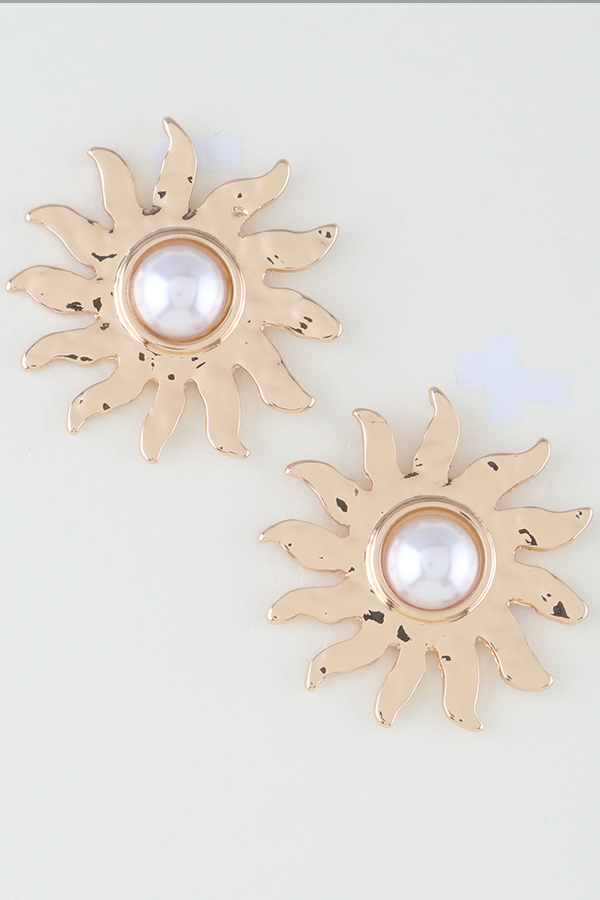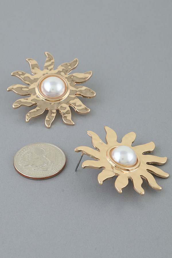 • * Rising Sun Pearl Stud Earrings