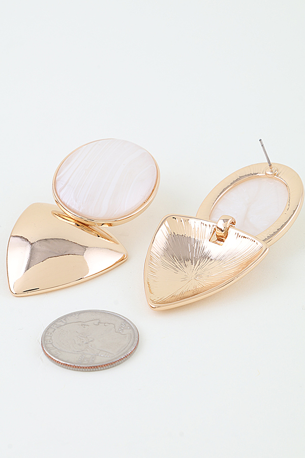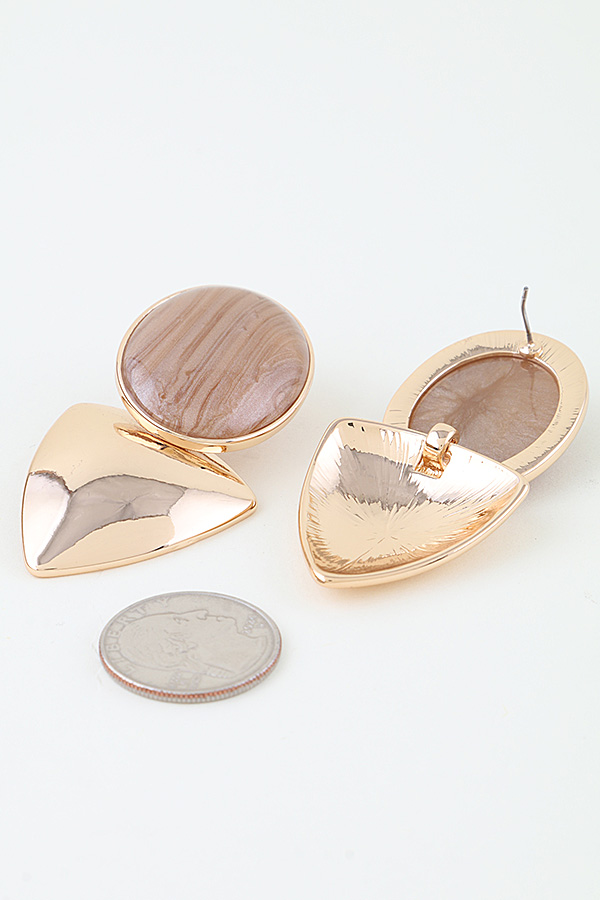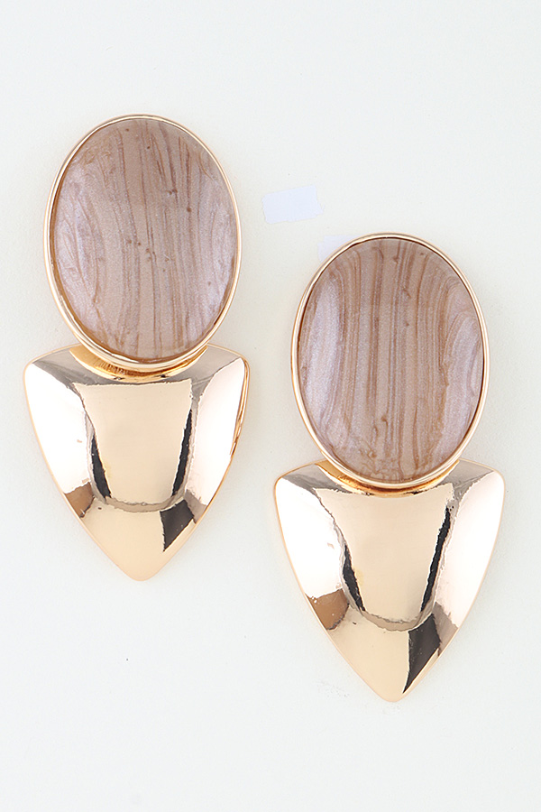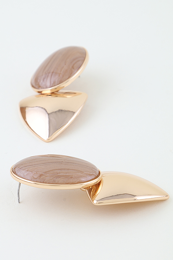 - * These Polished Grain Drop Earrings from H&D Accessories feature a sleek, polished metal base with a smooth, oval stone that showcases natural grain patterns. Their modern, geometric design is perfect for adding a refined touch to office attire or making a sophisticated statement at evening dinners. Crafted with meticulous detail, they offer both understated elegance and versatile wearability for any setting.