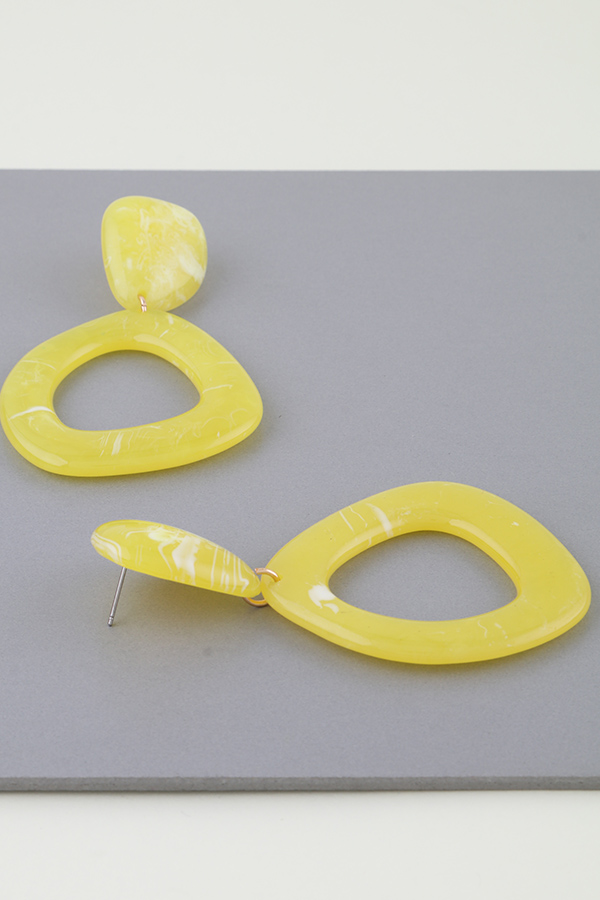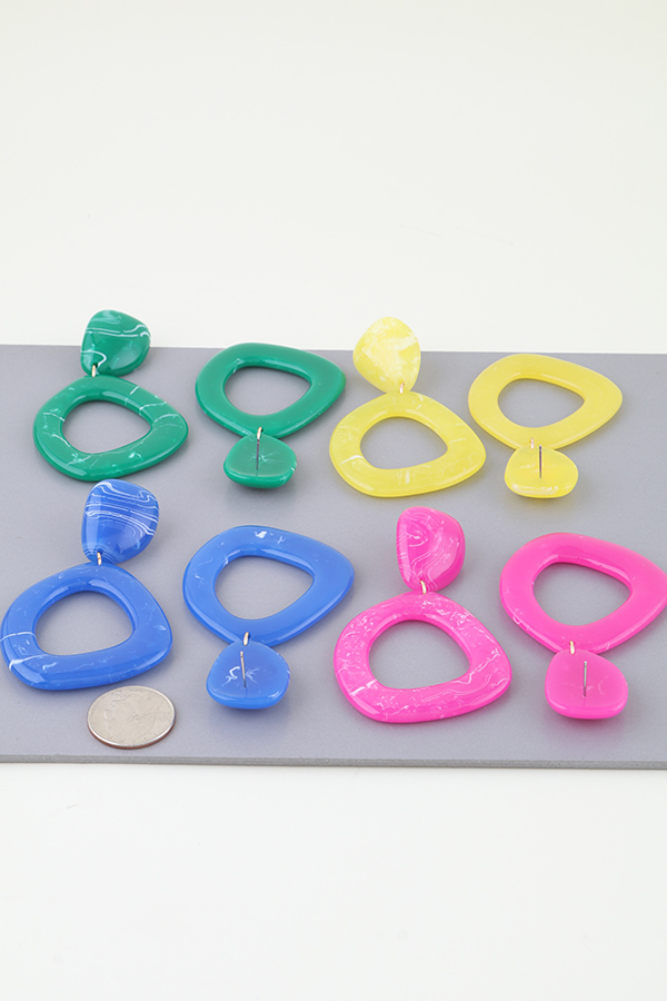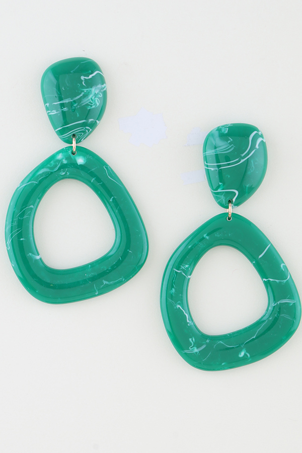 • * Step into bold retro style with these Retro Marble Loop Drop Earrings from H&D Accessories. Featuring a two-part design, each earring consists of a smooth, marbled top piece connected to a large, open loop drop. The swirling, marbled texture adds a nostalgic, vintage-inspired charm, while the lightweight construction ensures comfortable all-day wear. Perfect for making a playful yet polished statement, these earrings blend retro aesthetics with modern design, making them a standout addition to your jewelry collection.