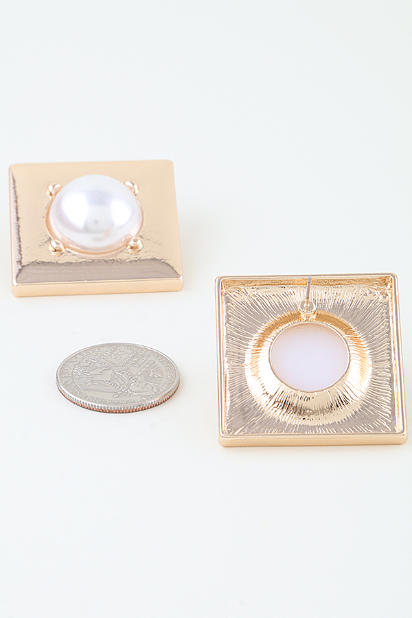 - * Pearl Stone Plate Stud Earrings