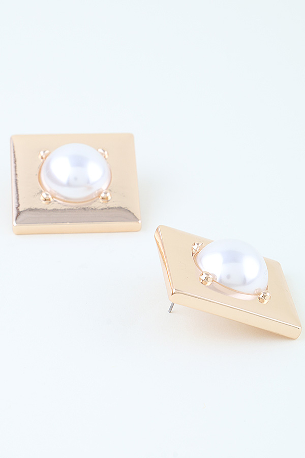 - * These Pearl Stone Plate Stud Earrings from H&D Accessories feature a sleek, square metal frame with a lustrous pearl at its center, held in place by four delicate prongs. Their clean, geometric design is ideal for adding a refined touch to office attire or complementing a polished look for evening dinners. Crafted with attention to detail, they offer both understated elegance and versatile wearability for any setting.