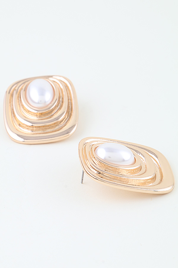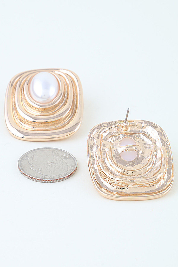 - * These Tide Pool Pearl Stone Stud Earrings from H&D Accessories feature a bold, layered design with concentric, rippled metal frames surrounding a lustrous central pearl. Their eye-catching, organic shape is perfect for making a statement at evening events or adding a sophisticated touch to daytime brunch outfits. Crafted with meticulous detail, they offer both striking visual appeal and versatile wearability for any occasion.