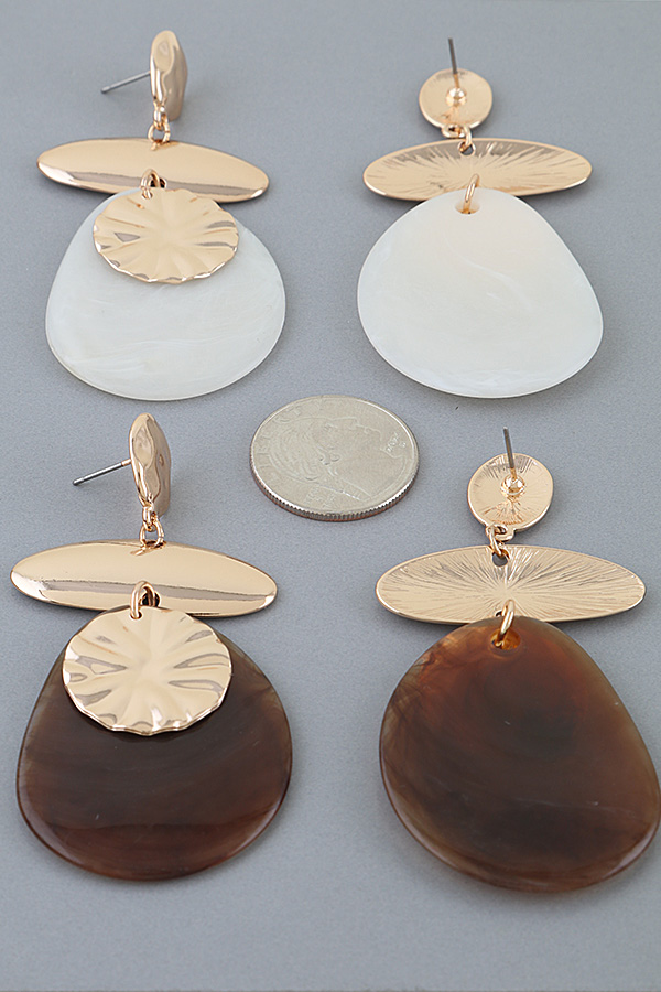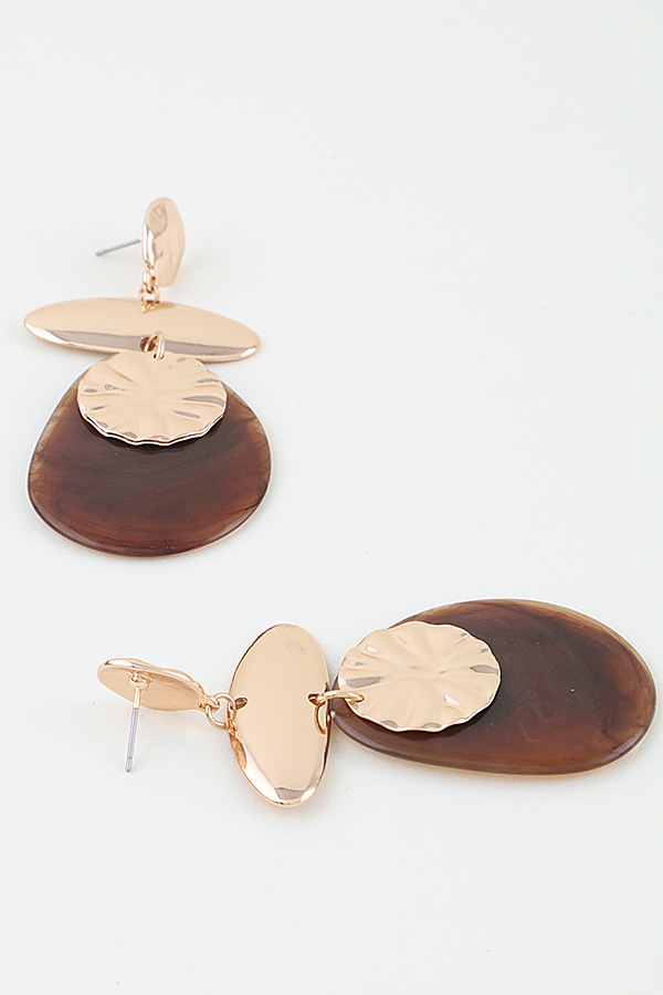 - * Modern Disc Stone Drop Earrings from H&D Accessories. These earrings feature a layered design with smooth, organic-shaped metal discs and a striking stone drop, crafted with a polished finish for a sleek, contemporary look. Lightweight and easy to wear, they elevate everyday outfits and add a sophisticated touch to office meetings, date nights, or weekend outings. A perfect blend of modern style and timeless elegance, they make a standout accessory for any jewelry collection.