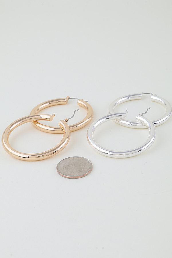 - * This is a pair of Twin Shiny Metal Hoop Earrings from H&D Accessories. They have a circular hoop structure with a polished, reflective surface. Each earring features an open - ended design with a small metal piece for wearing, presenting a simple yet stylish look.