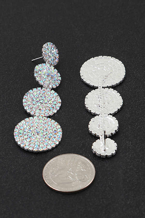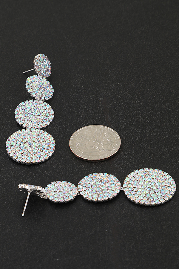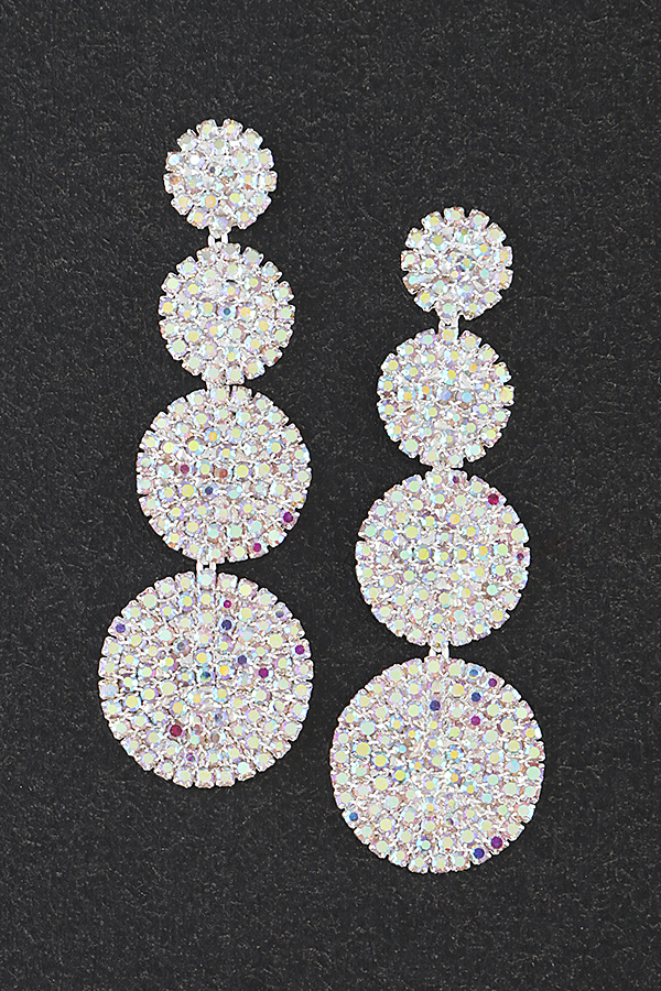 - * These Bedazzled Disco Ball Drop Earrings from H&D Accessories feature a cascading design of four graduated circular discs, each fully encrusted with shimmering, multi-faceted stones that catch and reflect light to create a dazzling, eye-catching glow, with a sleek structure that adds bold, glamorous dimension to any look, perfect for elevating night-out outfits, party looks, or special event ensembles.