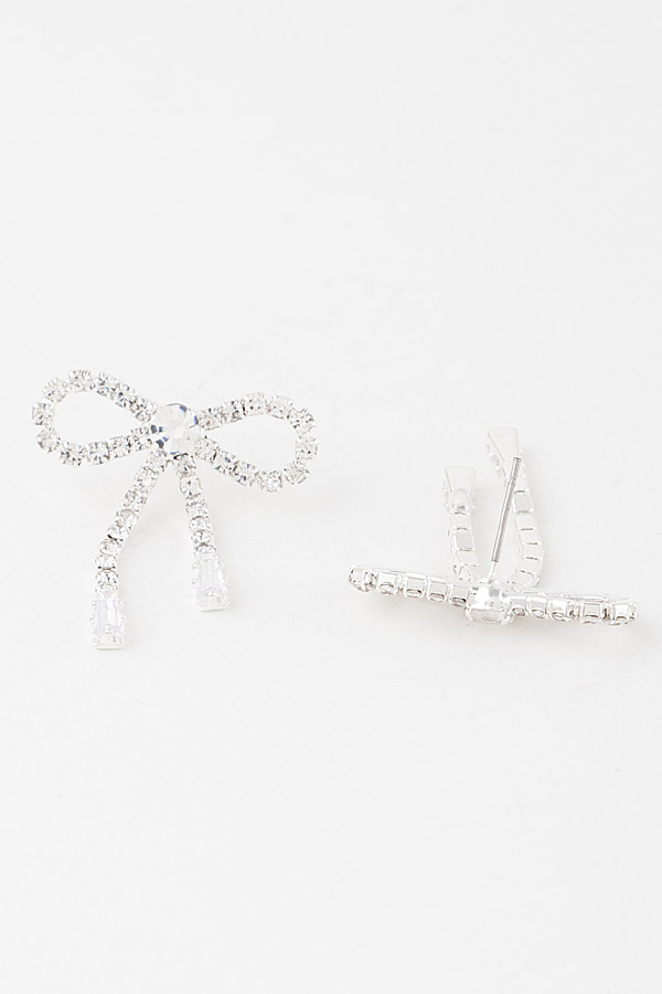 - * Pave Rhinestone Bow Drop Earrings