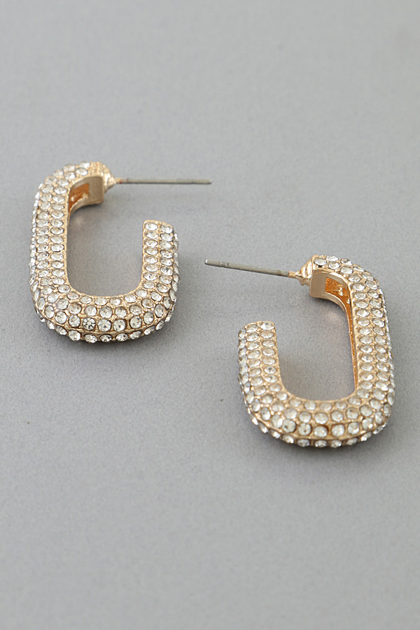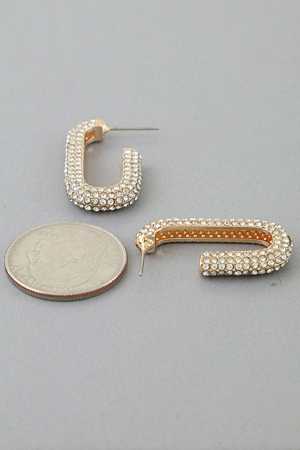 • * This is the Bejeweled Link Chain Hoop Earrings, a glamorous accessory from H&D Accessories. It features a curved hoop design densely adorned with sparkling details, paired with secure post closures for a comfortable fit. Perfect for adding a touch of shine to special occasions—whether you’re attending a wedding reception, a cocktail party, or a festive gathering—these earrings serve as a eye-catching statement piece. They also elevate dressier daily looks, like a polished office outfit or a dinner date ensemble, making them a versatile choice to brighten up various moments.