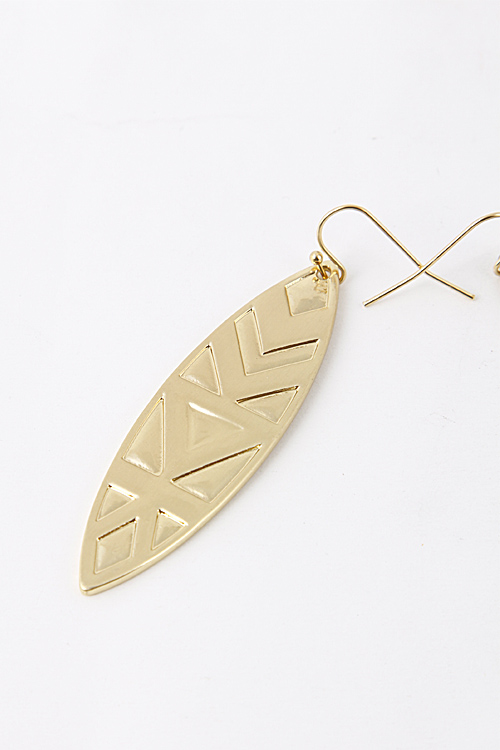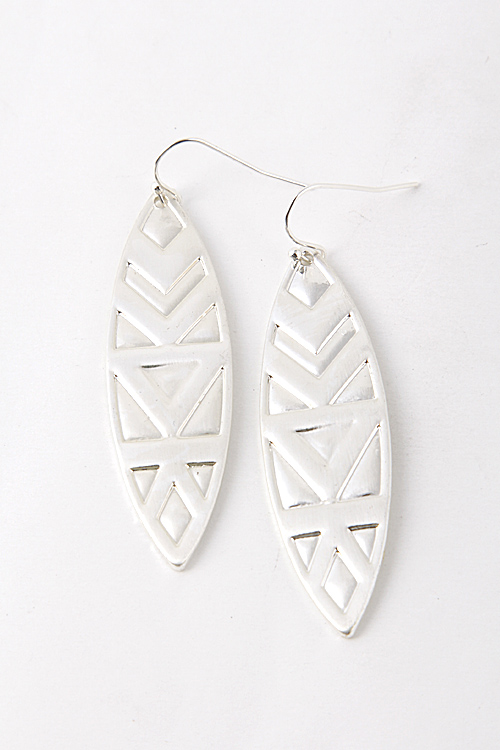 - * Chevron Geometric Dented Sharp Oval Dangle Earring 5FBI12 * .17 x 2.25" approx.