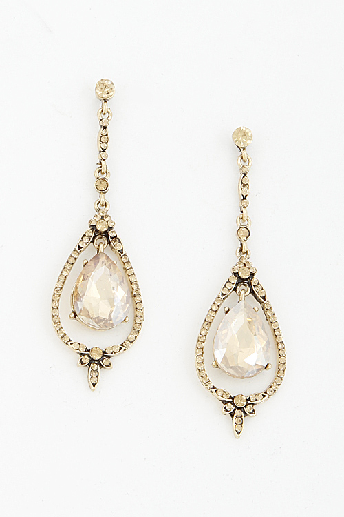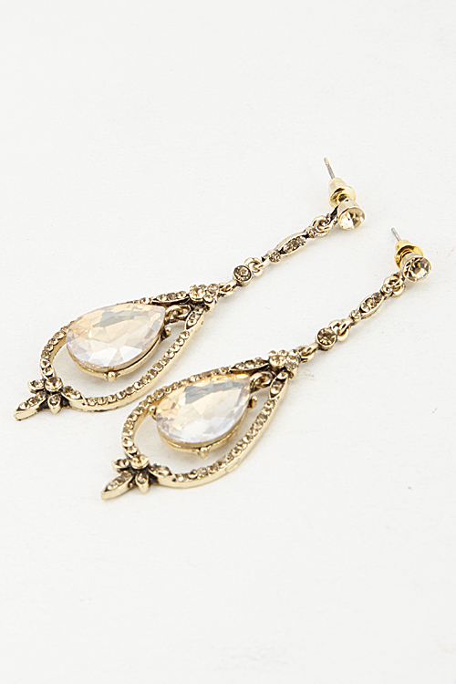 - * Vintage Stone Teardrop Earring 5JBC8 * 3X1" approx.